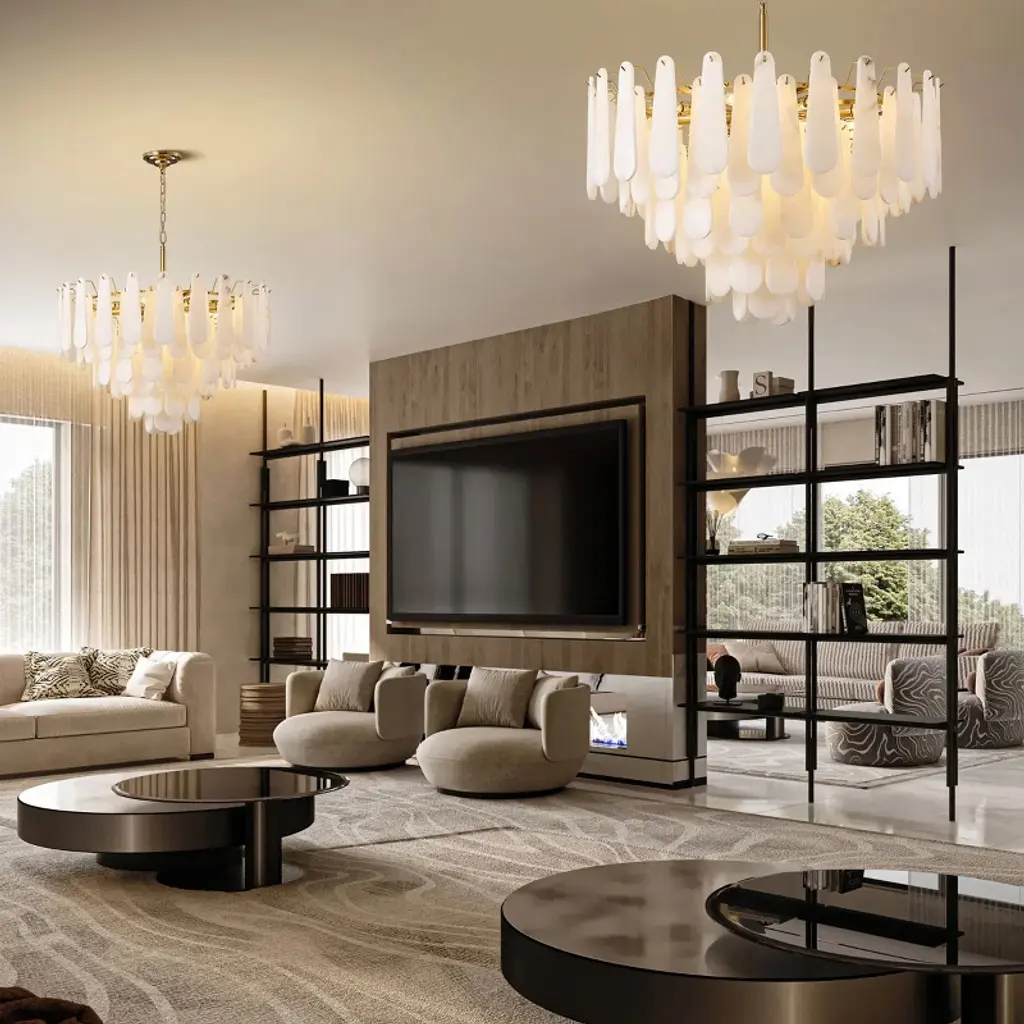 31.5" 6-tiers Luxury Round Alabaster Chandeliers