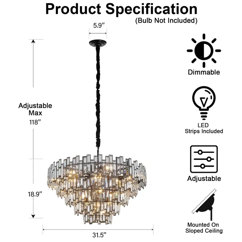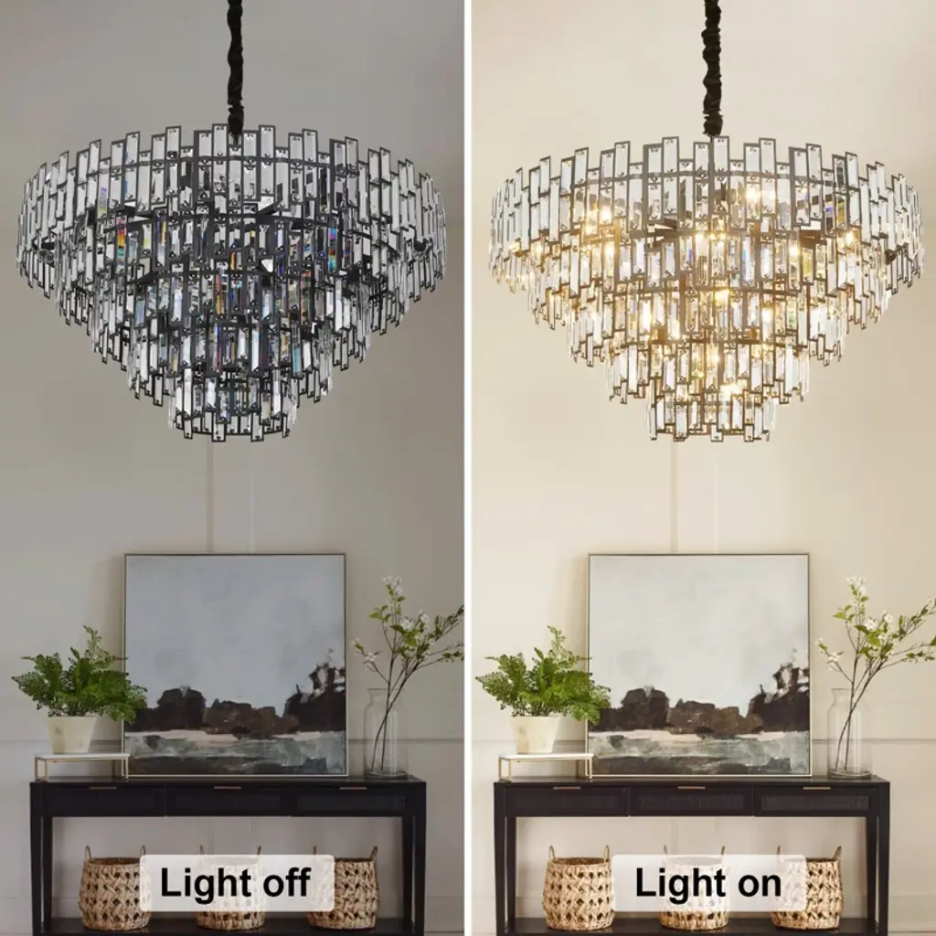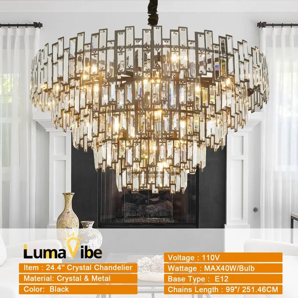 38.5 In. Modern Chandelier 26-light 5-tier Black Round K9 Crystal Chandelier
