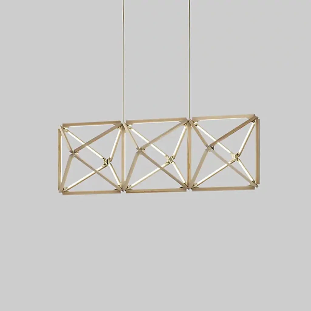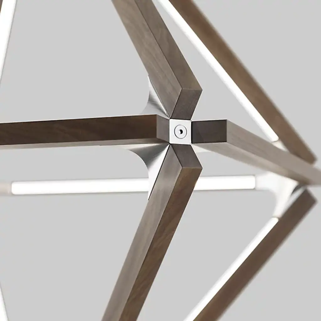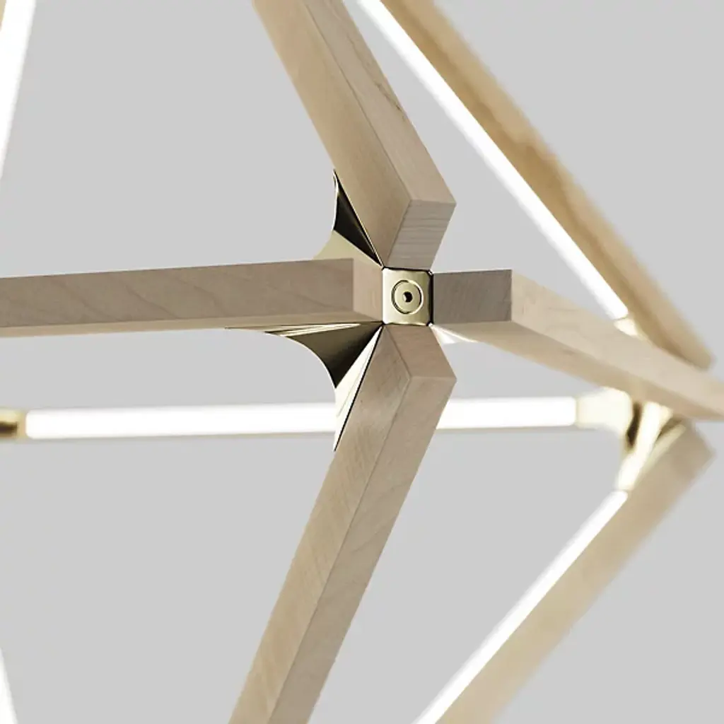 The 3X Truss Chandelier by Stickbulb was designed by Rux in 2015 and is made in New York City, USA. Made from either sustainably sourced or reclaimed wood and polished cast brass, this stunning chandelier is inspired by nature. The three octagonal shapes are placed in a horizontal line to create a geometric and graphic shape. Provides ambient illumination and a decorative accent to modern living rooms, dining areas, and entryways. Ships with a rectangular canopy and two 60" stems. Also available in 2400k, 2700k and 4000k Color Temperatures. Available with slope adapter and extra stem for hanging. Please call Customer Service to order.