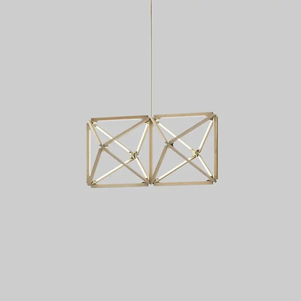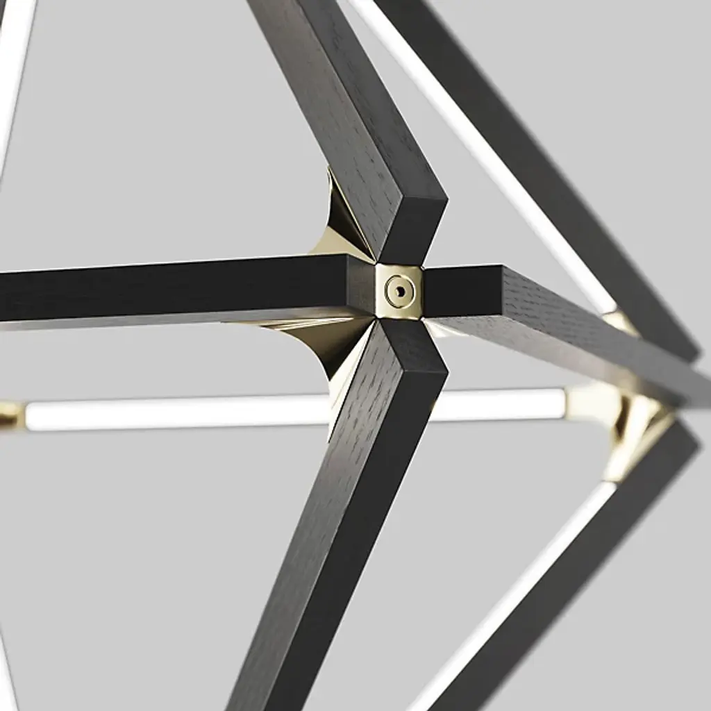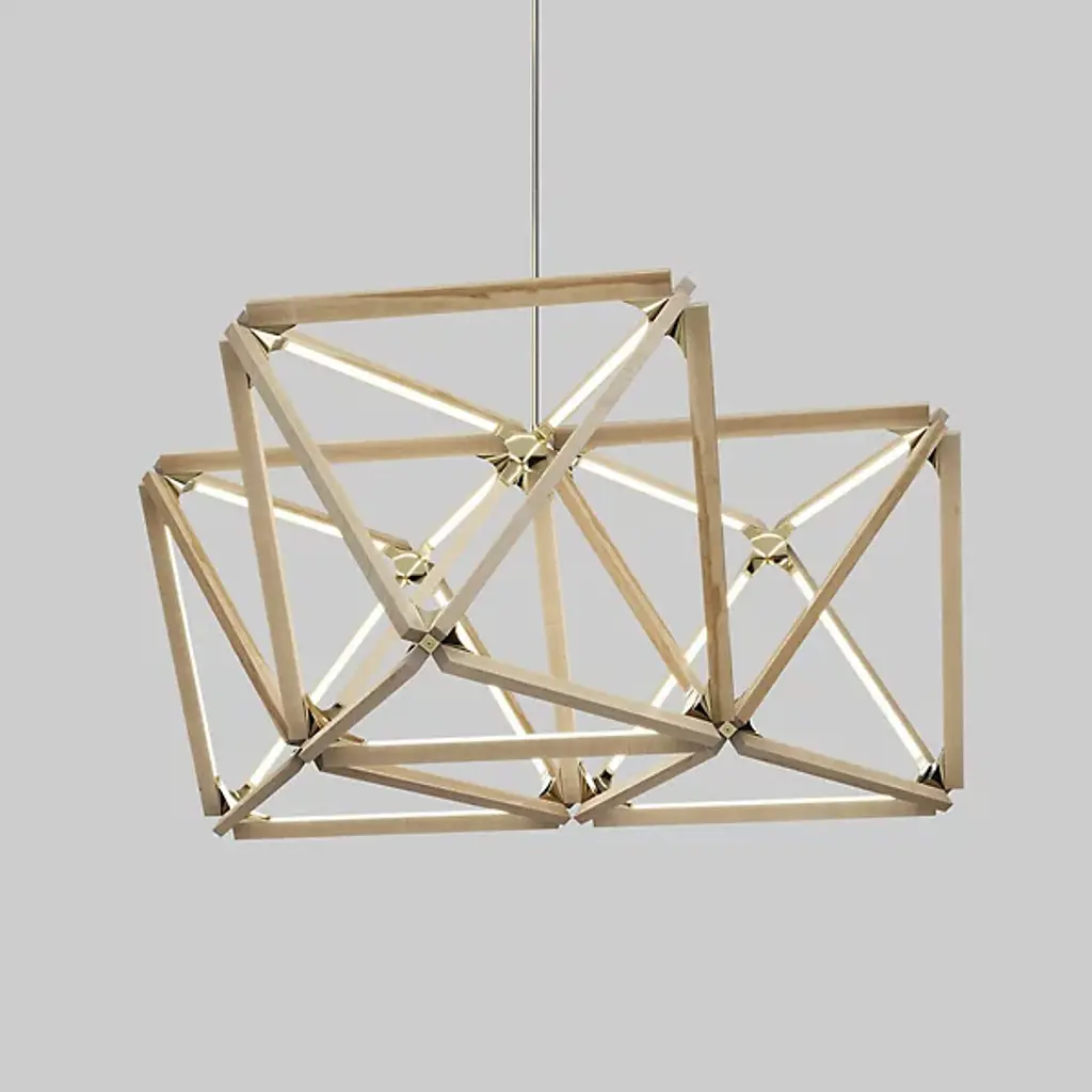 The 3X Truss Chandelier by Stickbulb was designed by Rux in 2015 and is made in New York City, USA. Made from either sustainably sourced or reclaimed wood and polished cast brass, this stunning chandelier is inspired by nature. The three octagonal shapes are placed in a horizontal line to create a geometric and graphic shape. Provides ambient illumination and a decorative accent to modern living rooms, dining areas, and entryways. Ships with a rectangular canopy and two 60" stems. Also available in 2400k, 2700k and 4000k Color Temperatures. Available with slope adapter and extra stem for hanging. Please call Customer Service to order.