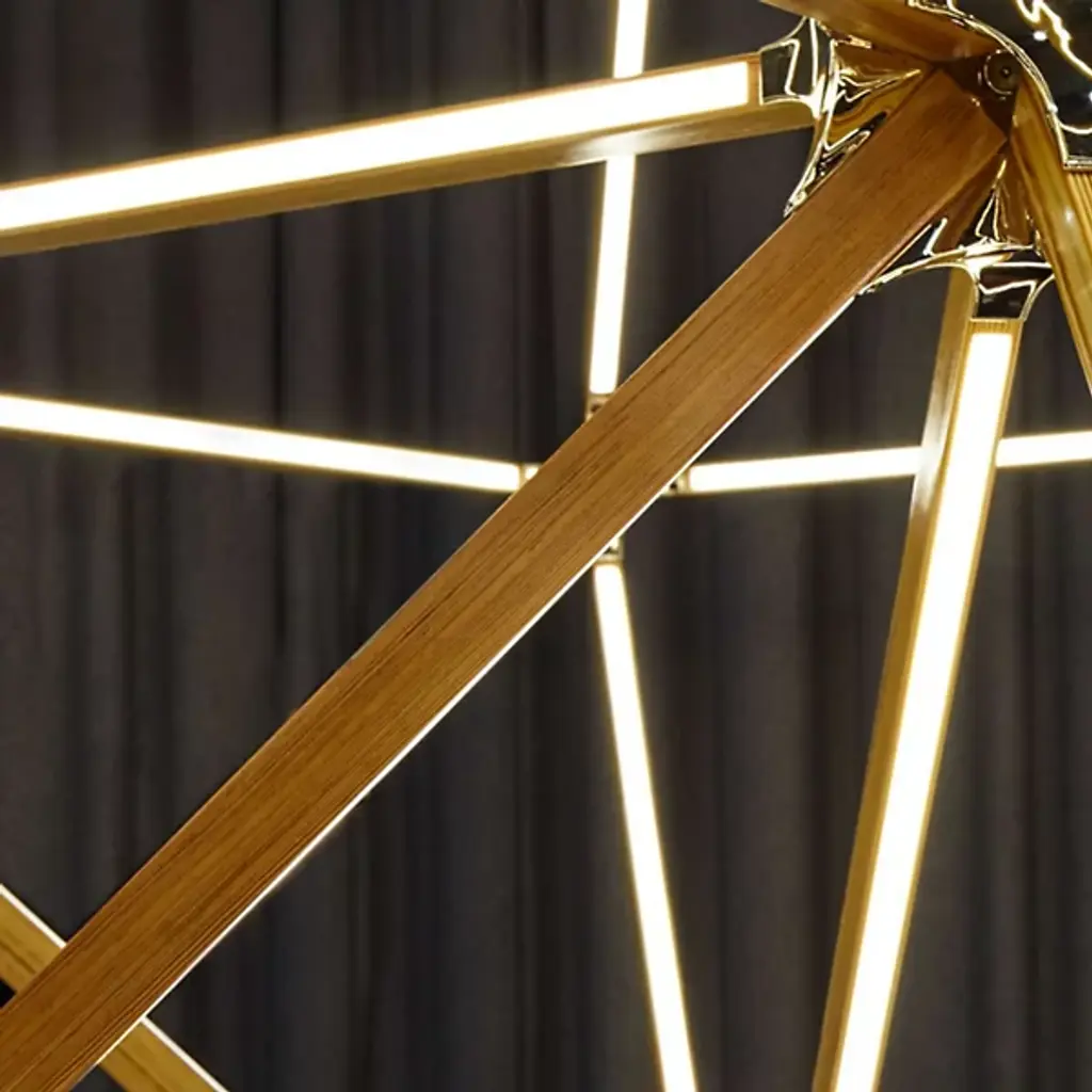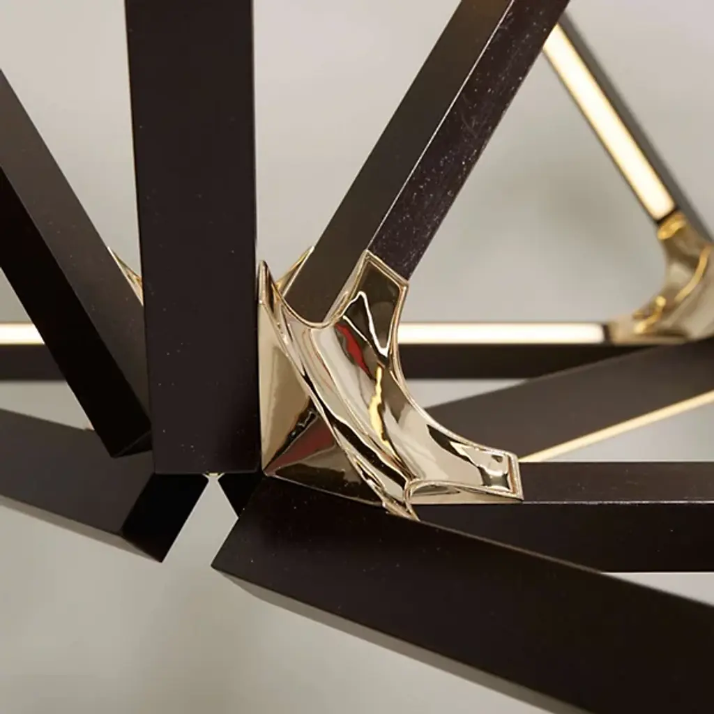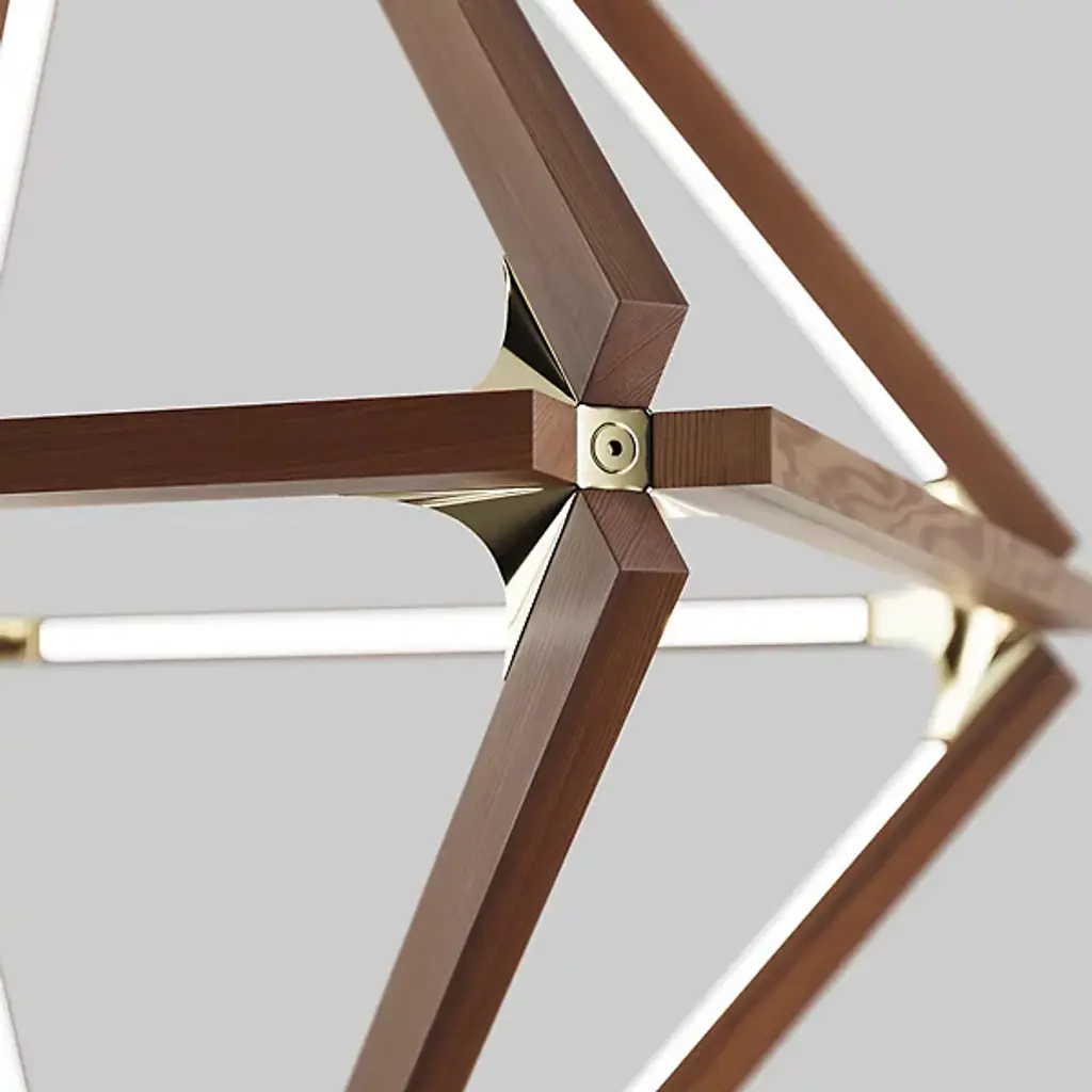 The 3X Truss Chandelier by Stickbulb was designed by Rux in 2015 and is made in New York City, USA. Made from either sustainably sourced or reclaimed wood and polished cast brass, this stunning chandelier is inspired by nature. The three octagonal shapes are placed in a horizontal line to create a geometric and graphic shape. Provides ambient illumination and a decorative accent to modern living rooms, dining areas, and entryways. Ships with a rectangular canopy and two 60" stems. Also available in 2400k, 2700k and 4000k Color Temperatures. Available with slope adapter and extra stem for hanging. Please call Customer Service to order.