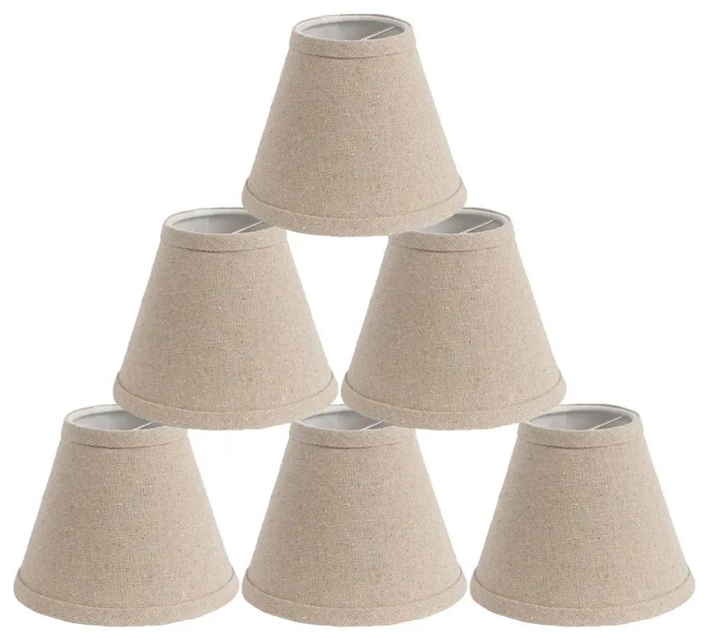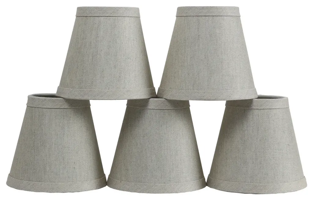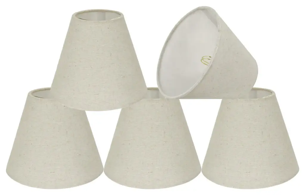 Urbanest hardback metallic fabric chandelier shadeThis shade measures 3" across the top, 5" across the bottom, and 4 1/2" overall height.Clip-on for candleabra bulbs. Maximum recommended wattage is 25 watts.List price is for two shades.