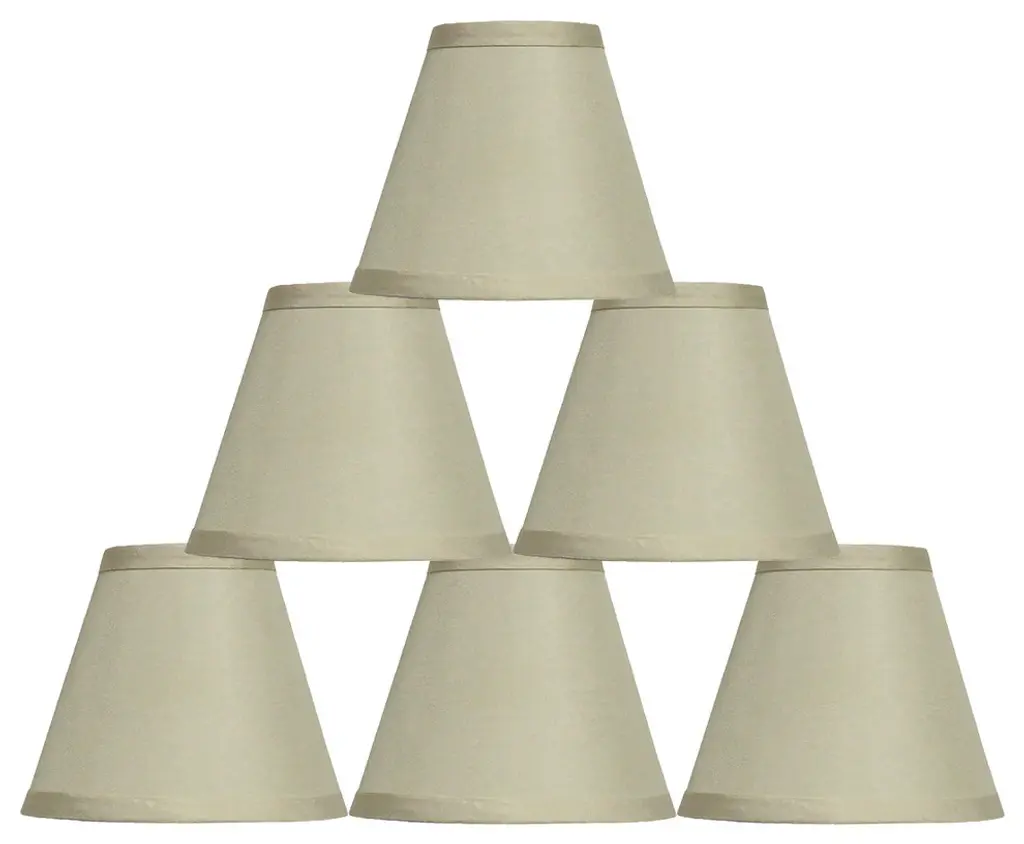 Urbanest hardback metallic fabric chandelier shadeThis shade measures 3" across the top, 6" across the bottom, and 5" overall height.Clip-on for candleabra bulbs. Maximum recommended wattage is 40 watts.List price is for six shades.