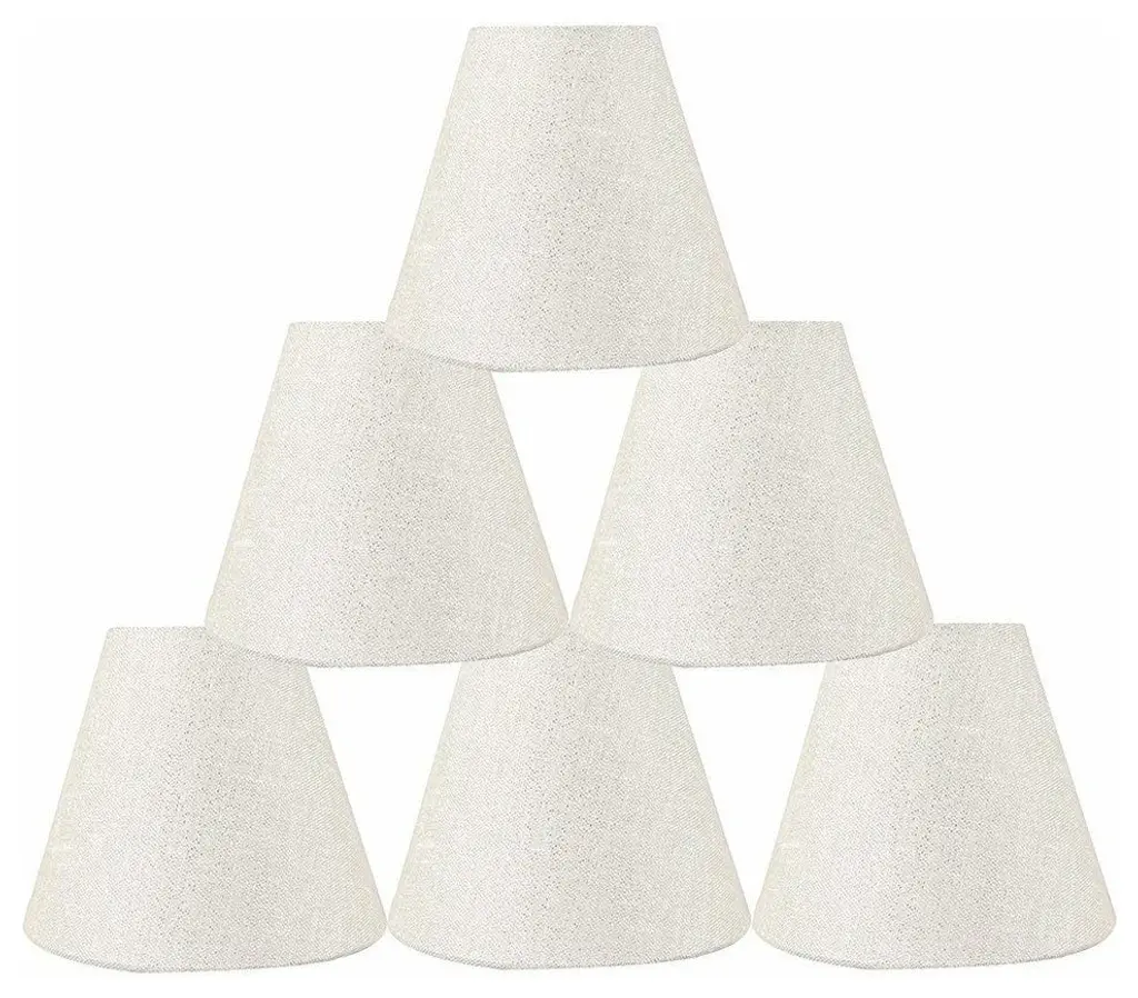 Urbanest hardback metallic fabric chandelier shadeThis shade measures 3" across the top, 6" across the bottom, and 5" overall height.Clip-on for candleabra bulbs. Maximum recommended wattage is 40 watts.List price is for two shades.