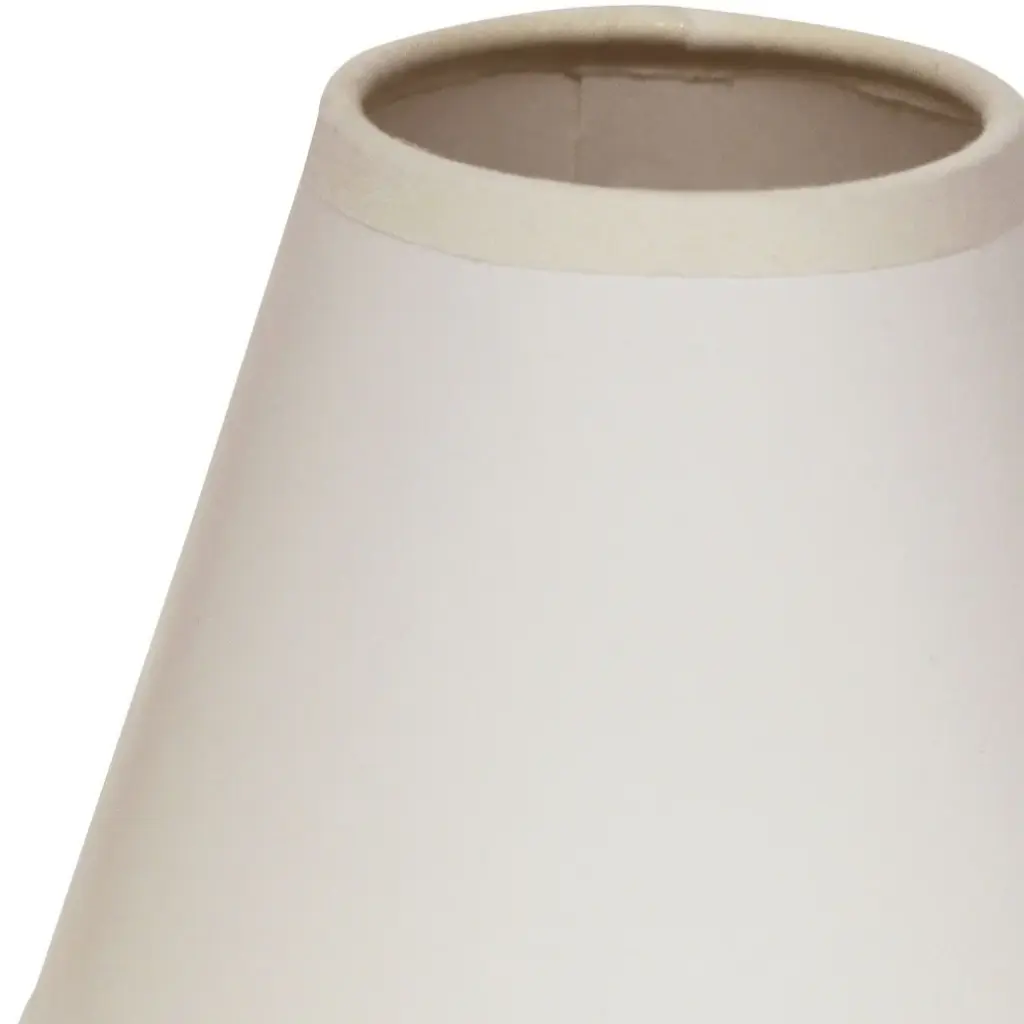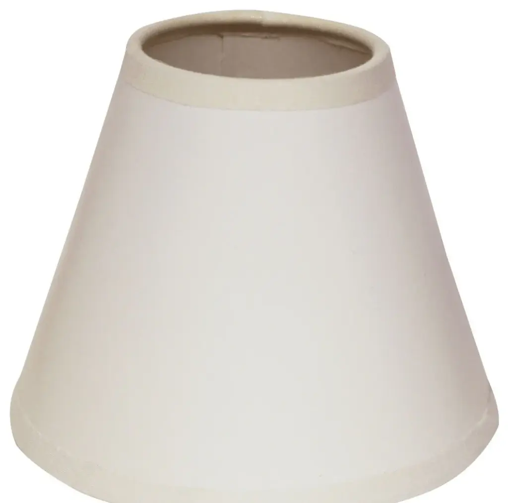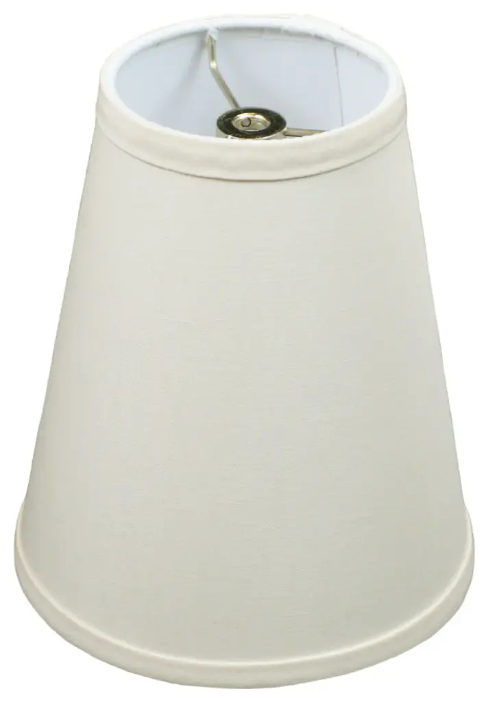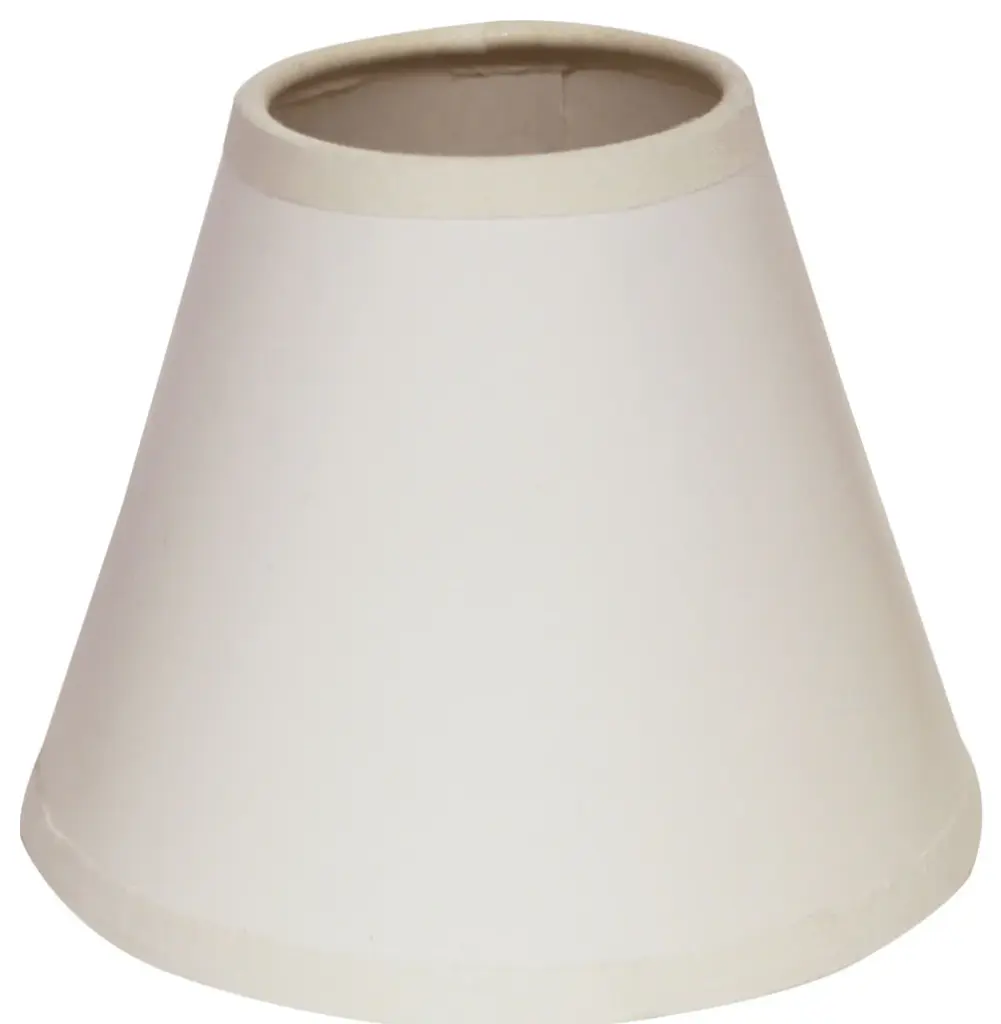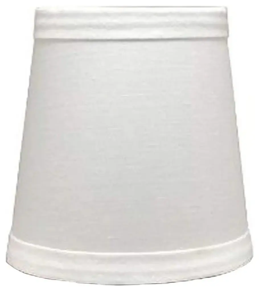 This Gloss White with White Lining Set of 6 Chandelier Parchment Lampshades has a hint of traditional flair and will be a great addition to your lamp base. This hardback Lampshades includes a standard flame clip that fits over a standard harp and can be used with your existing finial design. This high quality crafted drum shape has a slight slant to give it some visual interest and is crafted of the finest parchment with a fold on top and bottom of the shade. 4" x 4" x 4"Set of High Quality Parchment and Fabric Lamp Shades.This set of 6 chandelier shades features a sturdy brass finish metal Flame Clip that fits securely to your bulb.No finial is needed.Shade measures 3" top diameter x 4" bottom diameter x 4" slant height.Hardback chandelier shade with fabric taped edge on top and bottom and white interior.Made from high-quality Parchment