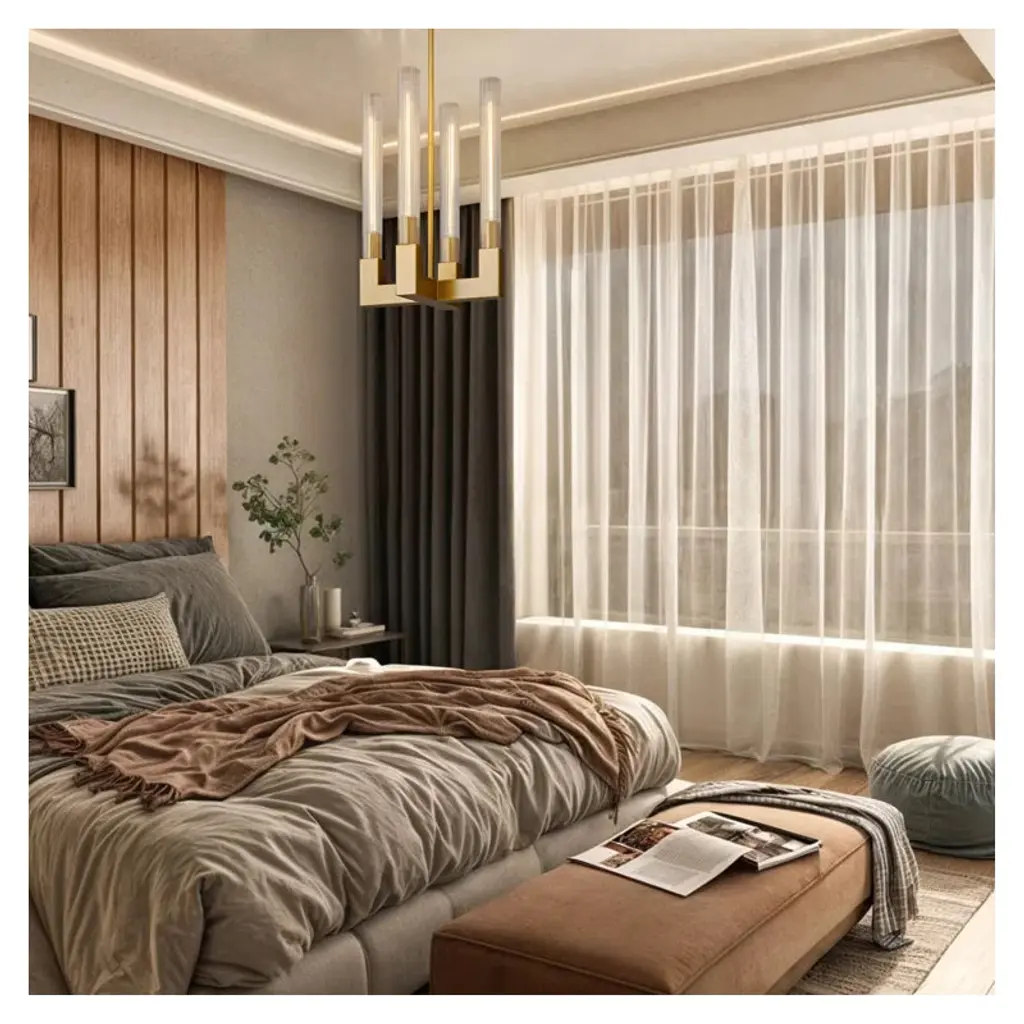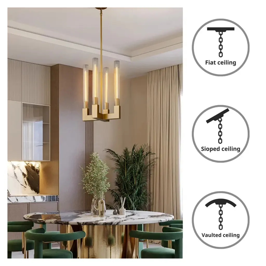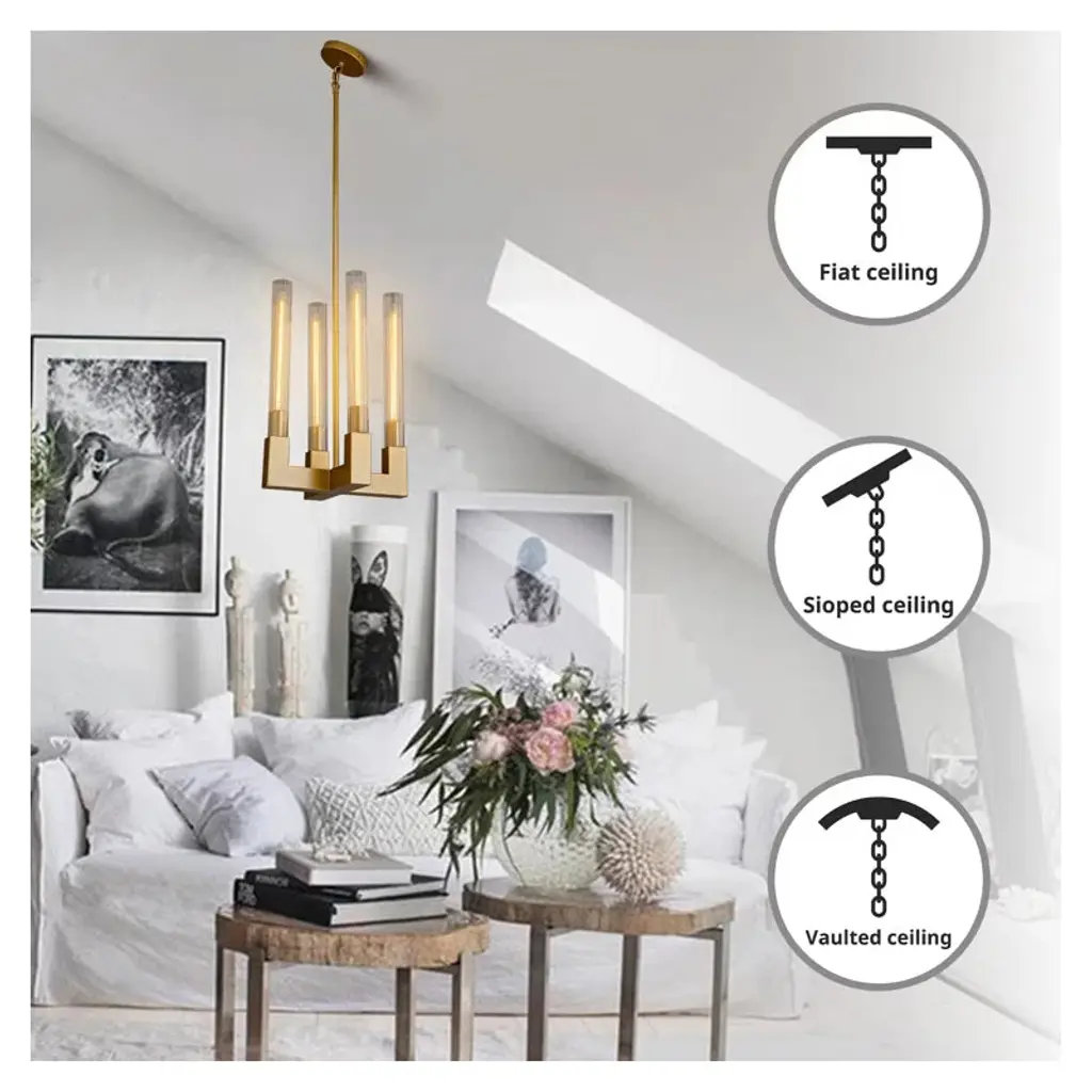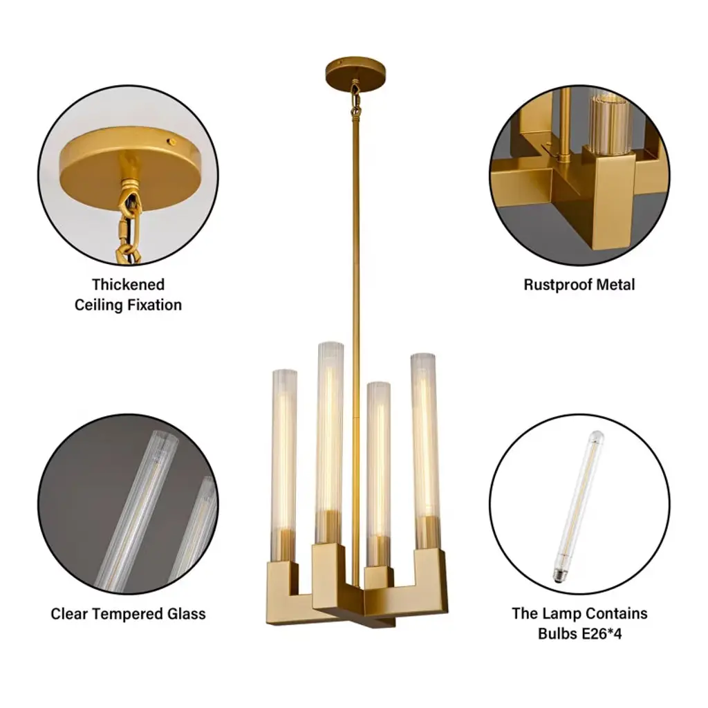 The 4-Lights Wagon Wheel Chandelier with Glass Tubes is a perfect fusion of farmhouse charm and modern elegance. Featuring a round, wagon wheel-inspired design, this luxurious chandelier is crafted with a sleek black finish and four lights encased in sophisticated glass tube shades. Ideal for dining rooms, living rooms, or foyers, it provides warm, inviting illumination while serving as a stylish focal point. Its balanced design combines rustic appeal with contemporary aesthetics, making it a versatile choice for various interiors. This chandelier adds a touch of refinement and charm to elevate any space.