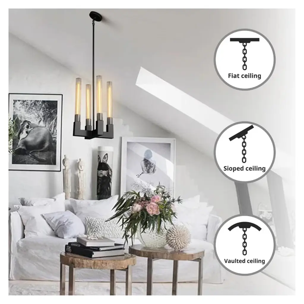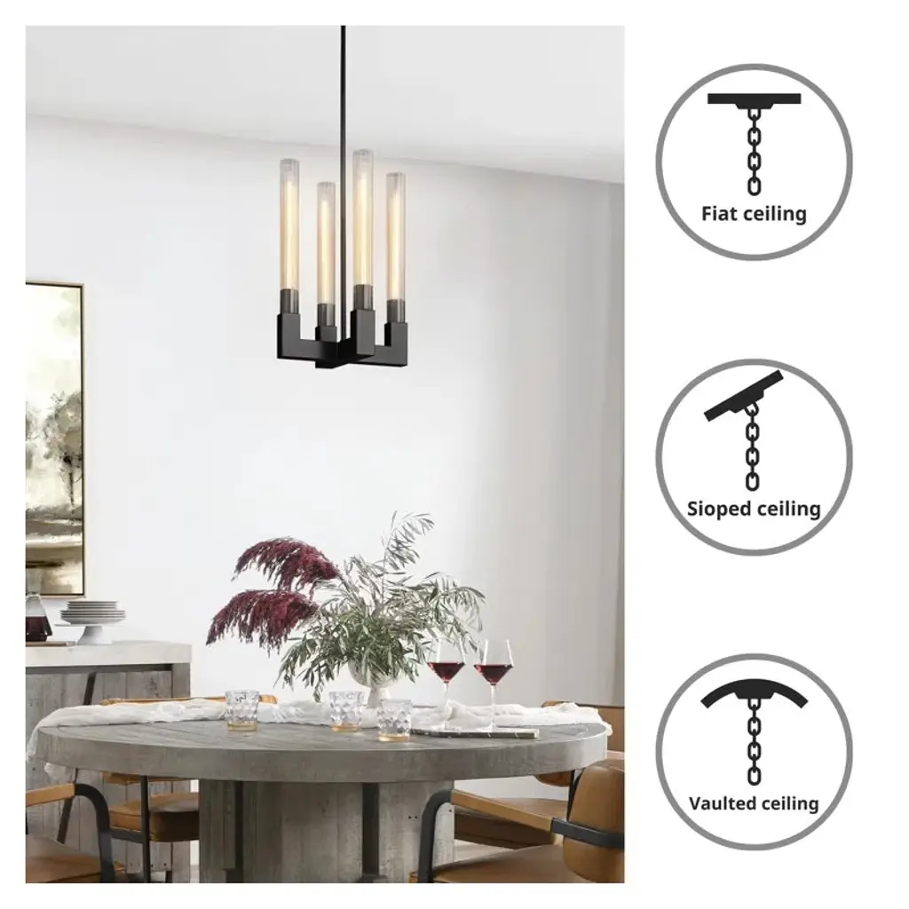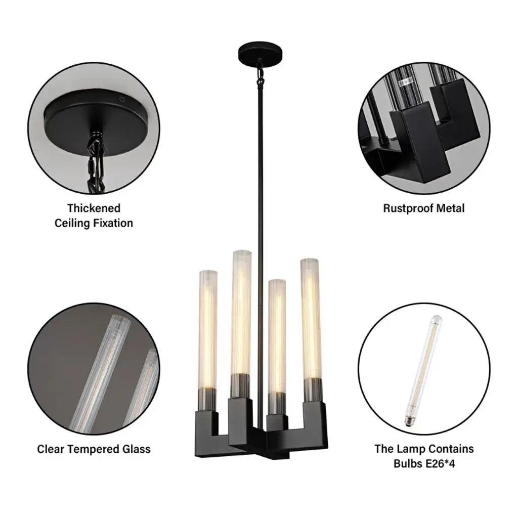 4-lights Wagon Wheel Chandelier With Glass Tube Black
