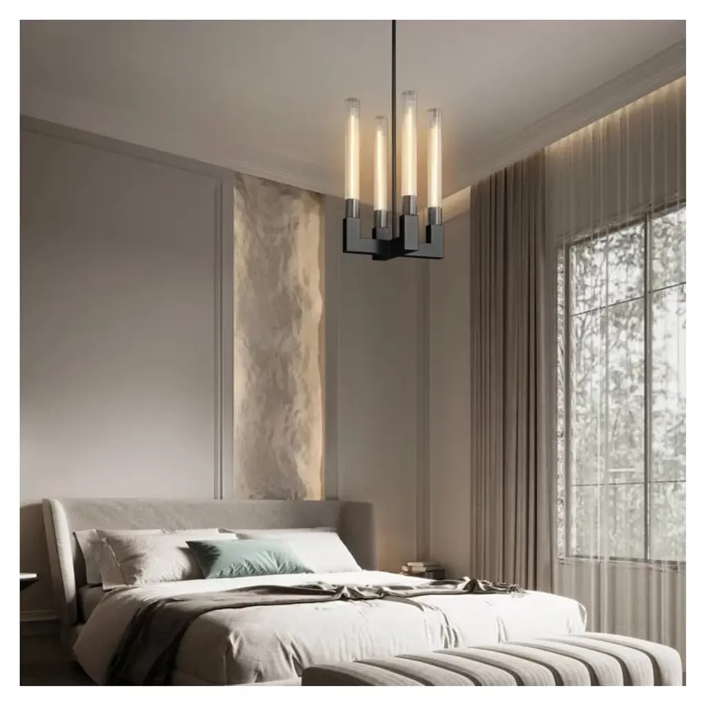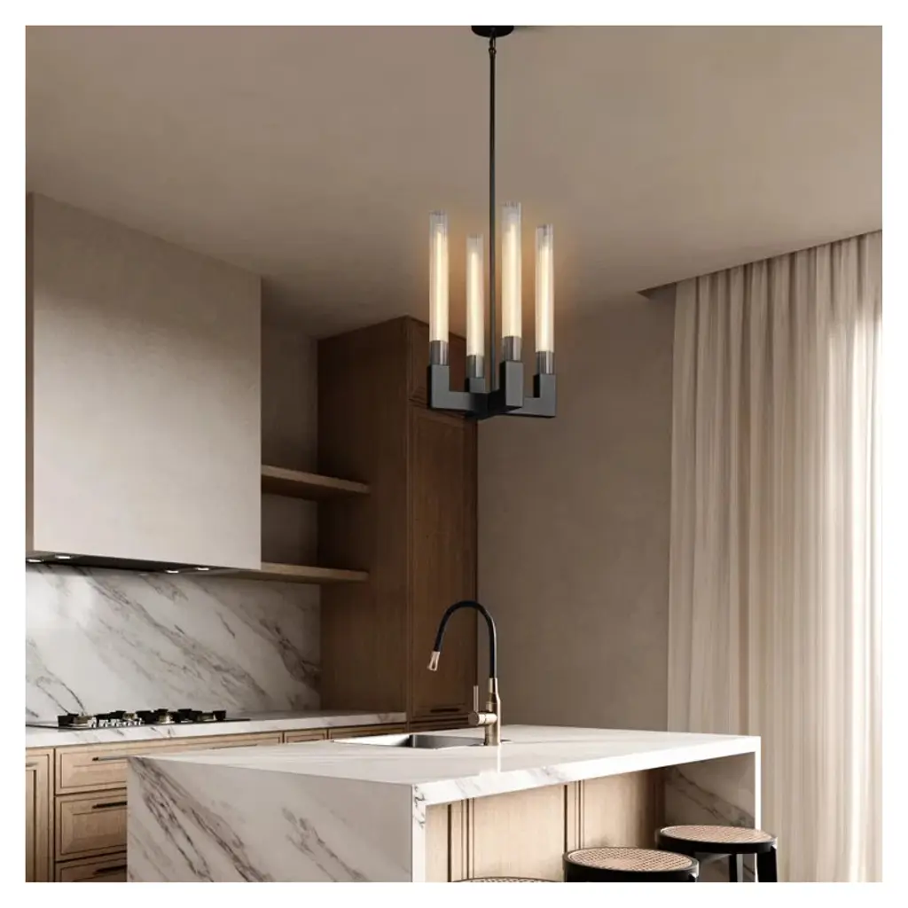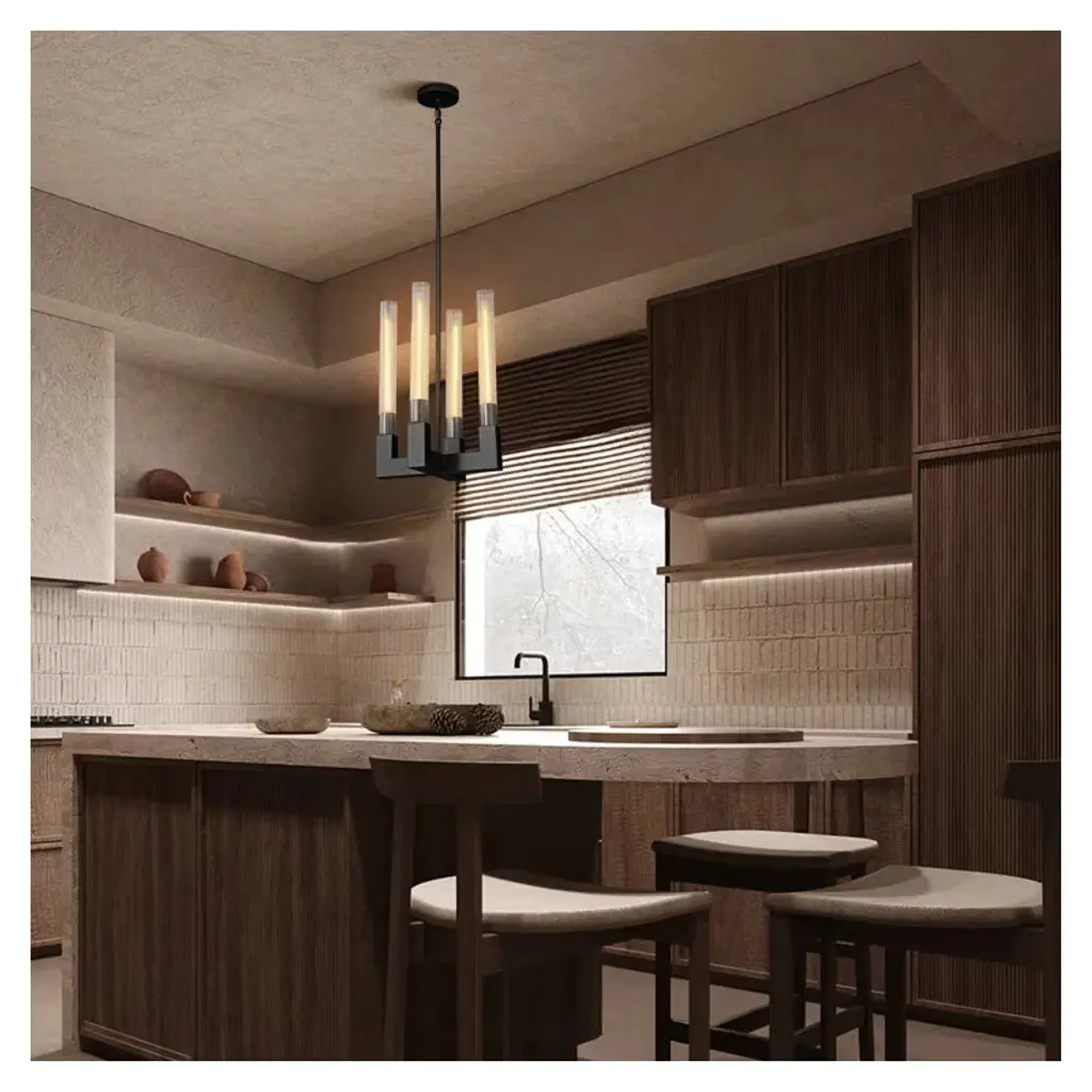 4-lights Wagon Wheel Chandelier With Glass Tube Black