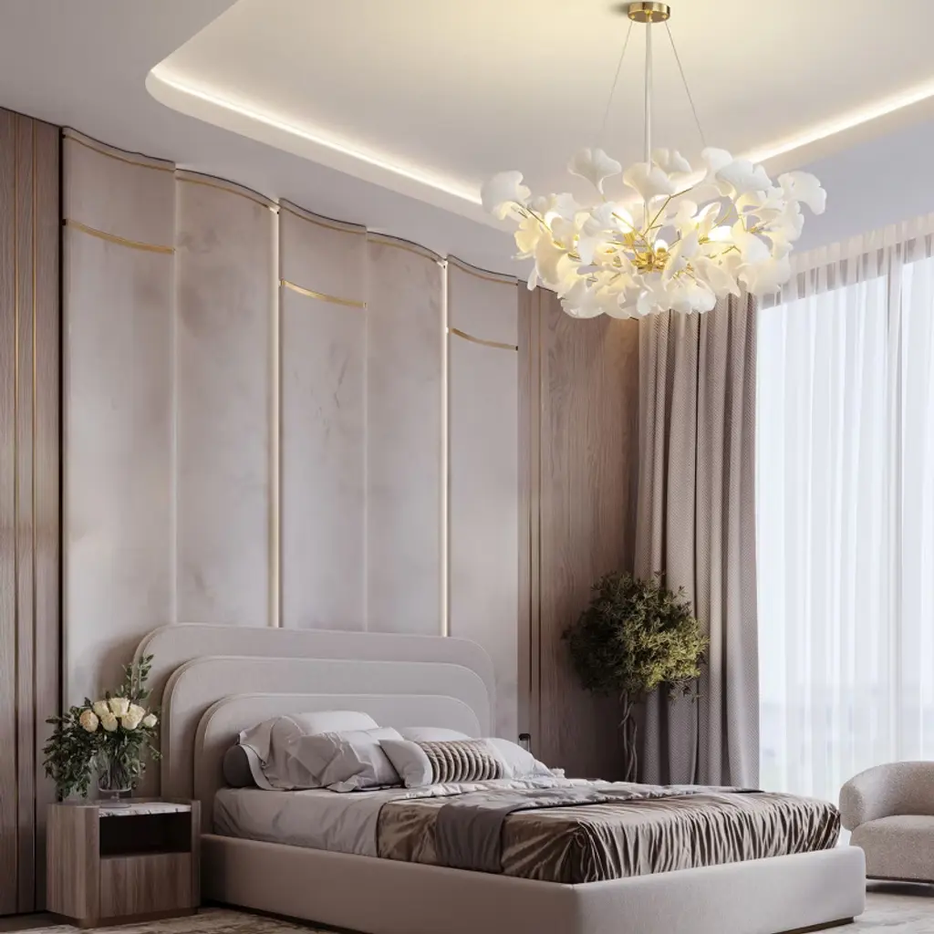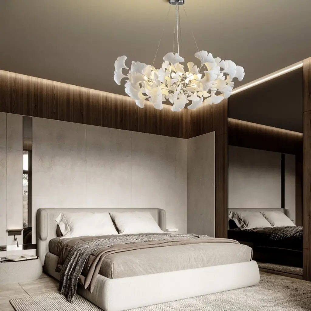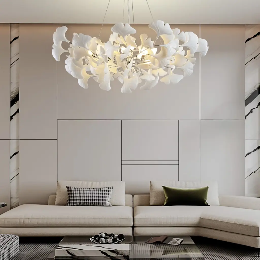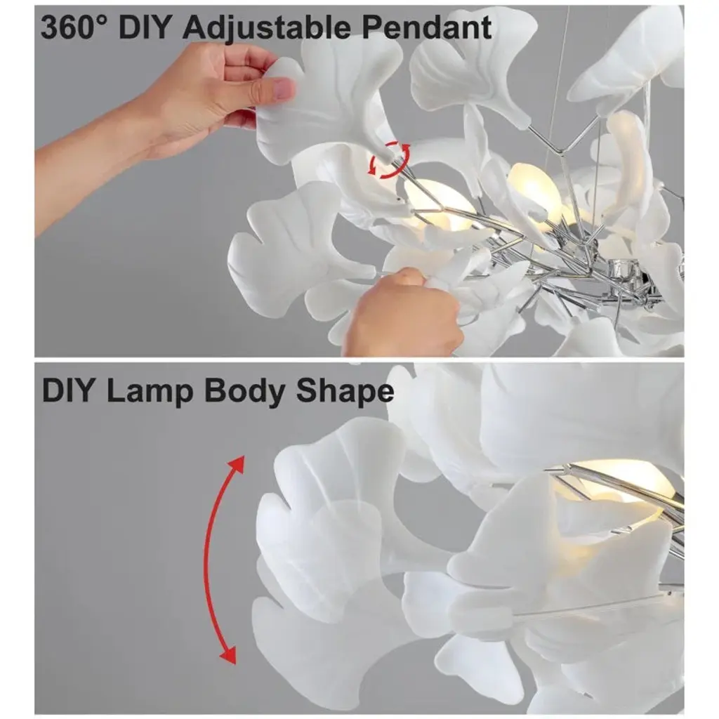Introducing the exquisite Ginkgo Leaf Dining Room Chandelier, a perfect blend of iron and ceramic, meticulously adorned with a sophisticated electroplated finish. A testament to opulence and sophistication, this chandelier elevates your dining environment to unparalleled heights. With its thoughtful design, it bathes your space in a warm 3000K glow, perfectly creating an ambience conducive to an exceptional dining experience.