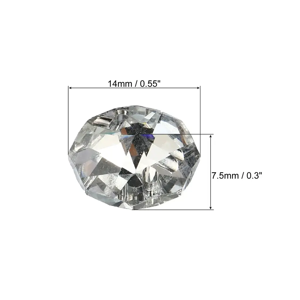 Crystal octagon beads are suitable to hang on chandeliers, sun catchers, crystal bead curtains, crystal lighting and other DIY decoration. They can be used in art projects, walls, window, families, weddings and Christmas tree decorations.SpecificationMaterial: CrystalBead Size: 14 x 14 x 7.5 mm / 0.55 x 0.55 x 0.3 inch (L*W*T)Packing List: 40 x Crystal Octagon BeadsAdvantageMade of crystal, smooth and sparkling, which can reflect light or sunlight to form colorful colors. It is a sparkling and beautiful ornament with beautiful light reflection around the room.InstructionEasy to use, just hang it where you want to decorate.NOTE: Please select the appropriate size according to your needs.
