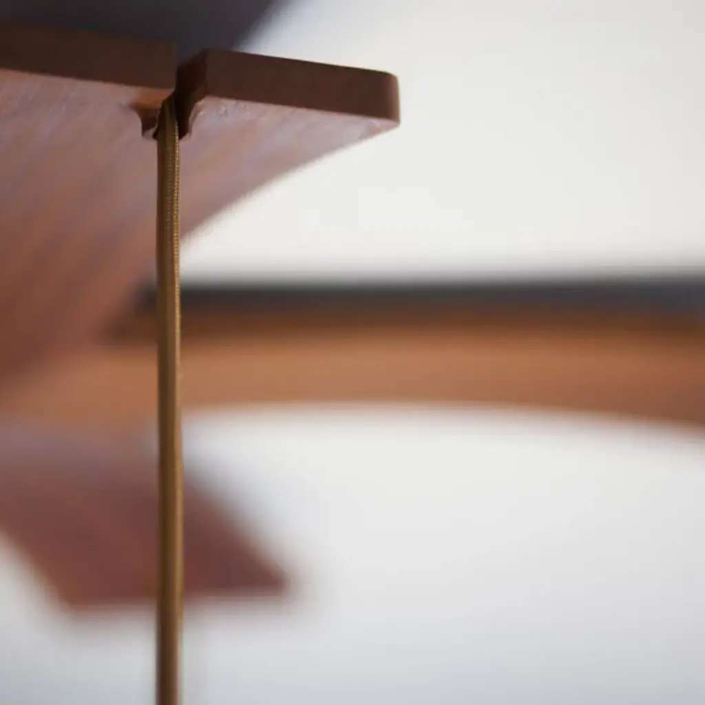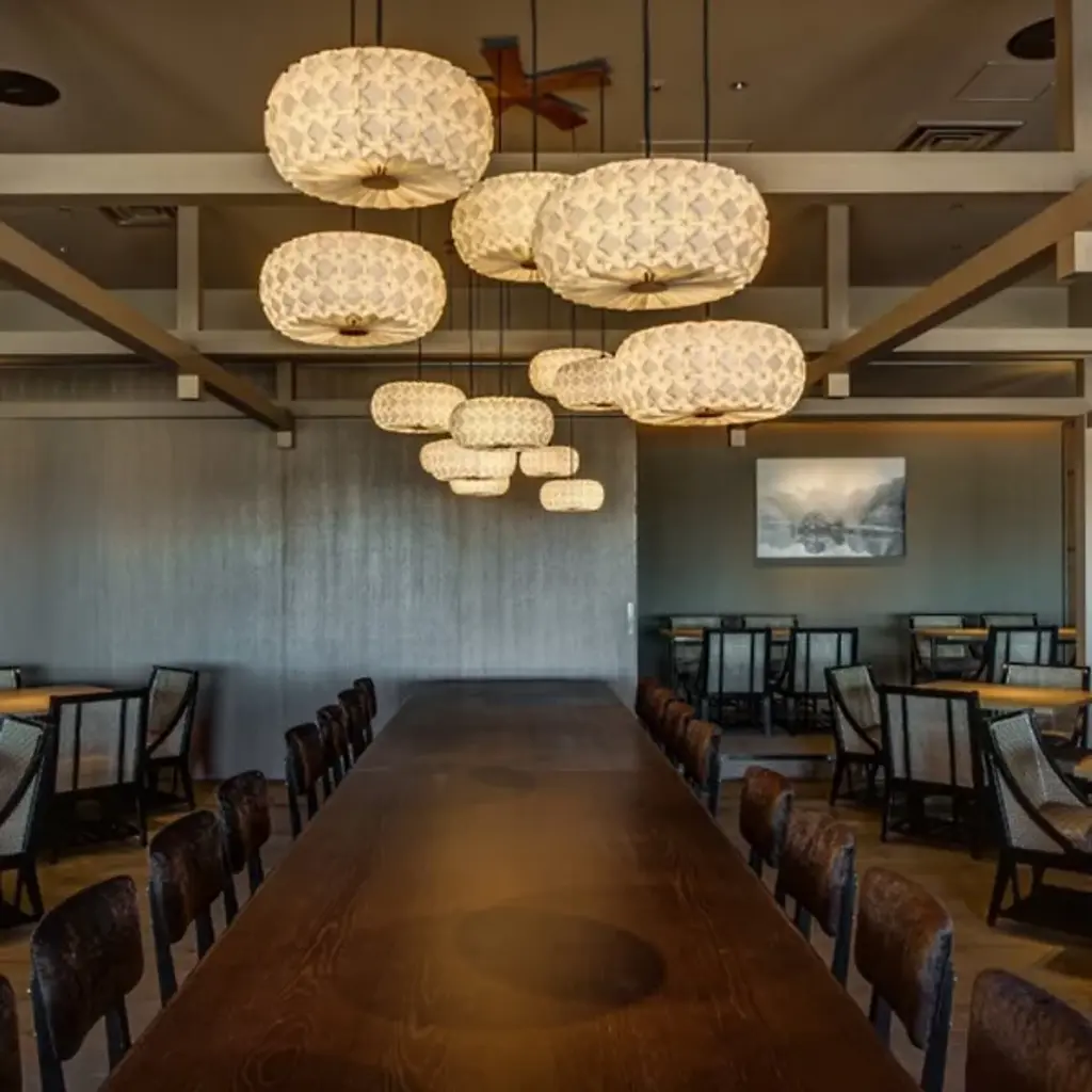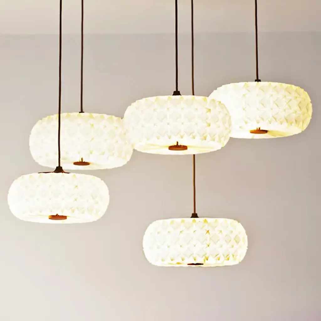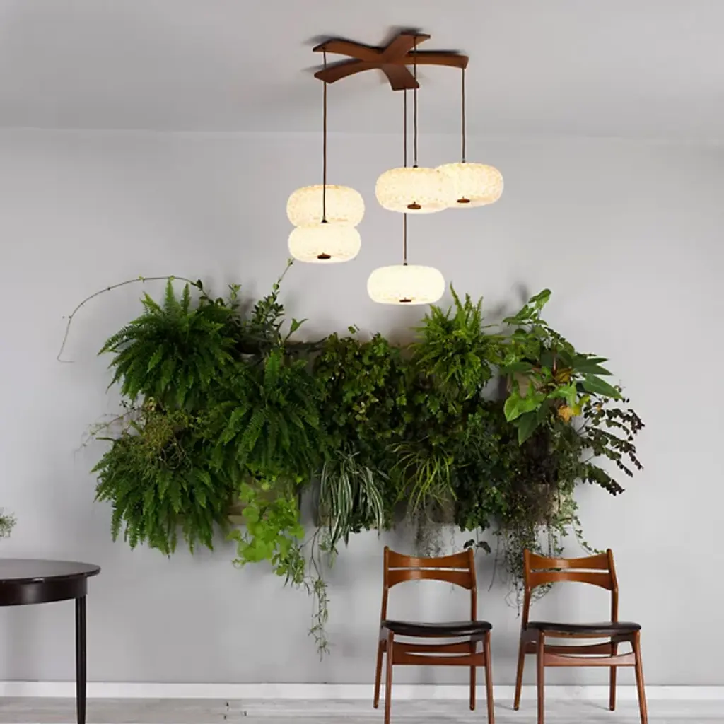 The 5 Molecules Chandelier from Aqua Creations blends modern design with traditional origami techniques, creating a look to complement any interior style. This chandelier has five origami paper lampshades, and each one is folded by hand. A design collaboration with Ilan Garibi, the lampshades offer a warm, inviting glow, illuminating any space. Like the shades, the wooden canopy is crafted with precision to enhance the overall sophistication and elegance.