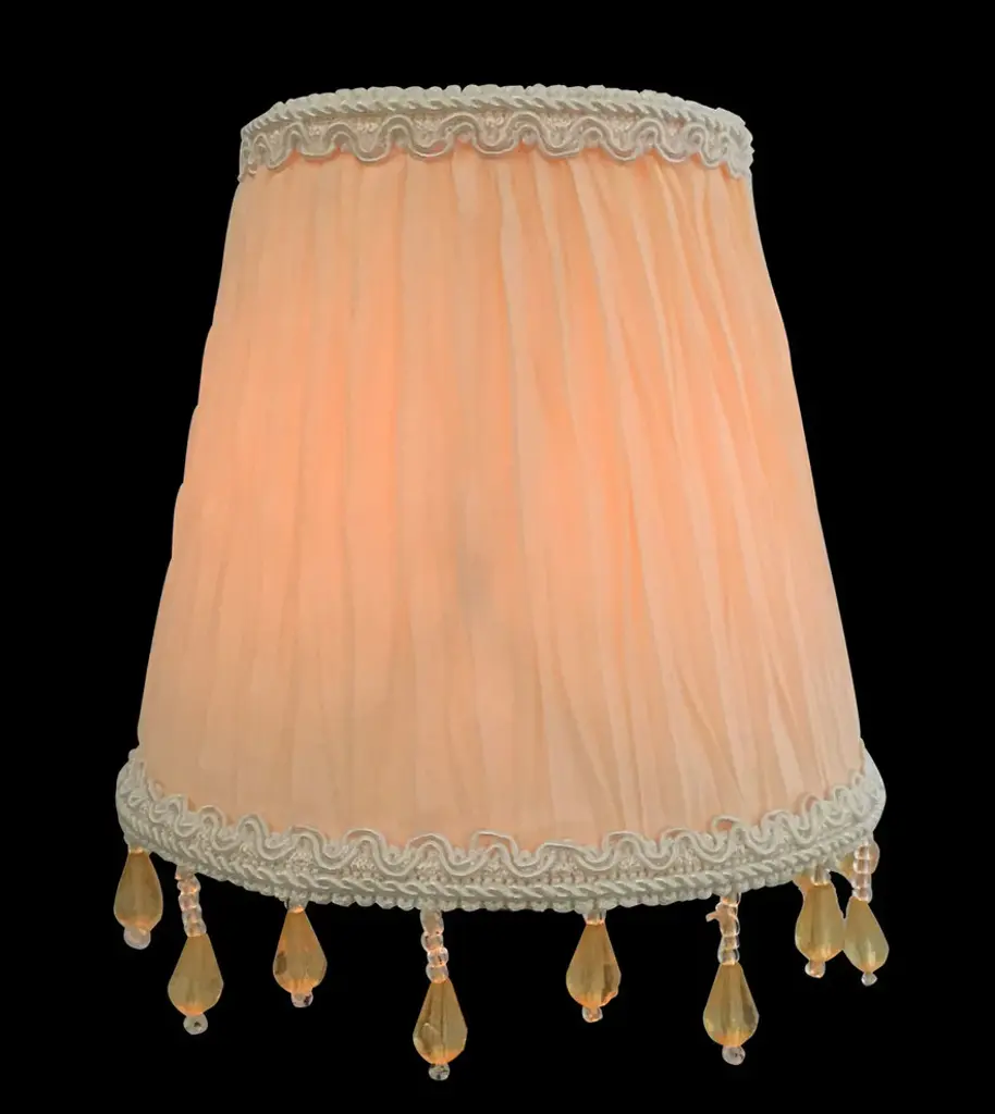 Royal Designs 5-Inch chandelier shades are handmade. You can use them for your chandeliers, wall sconces or small accent lamps. These lamp shades are highest quality and sure to bring a sense of style to any room.-Shade Dimensions: 3" x 5" x 4.5" (Top x Bottom x Height) -Shape: Empire-Fabric: Hand Tailored Silk-Type Shantung Fabric, Premium Off-White Softback Lining-Fitter: FLAME CLIP, FC, Fitter designed to fit over a Candelabra bulb base., Most clip-on lampshades are designed with double clip, . Suggested maximum wattage is 60-watt candelabra bulb.-Frame: Quality metal frame