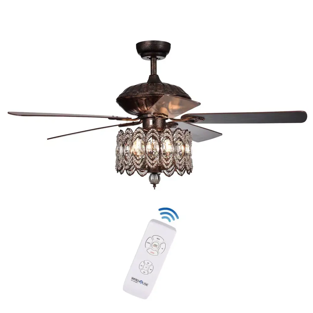 52" X 52" X 23" Grove Dejes Chandelier Lighted Ceiling Fan With Crystal Shade Brown - Warehouse Of Tiffany