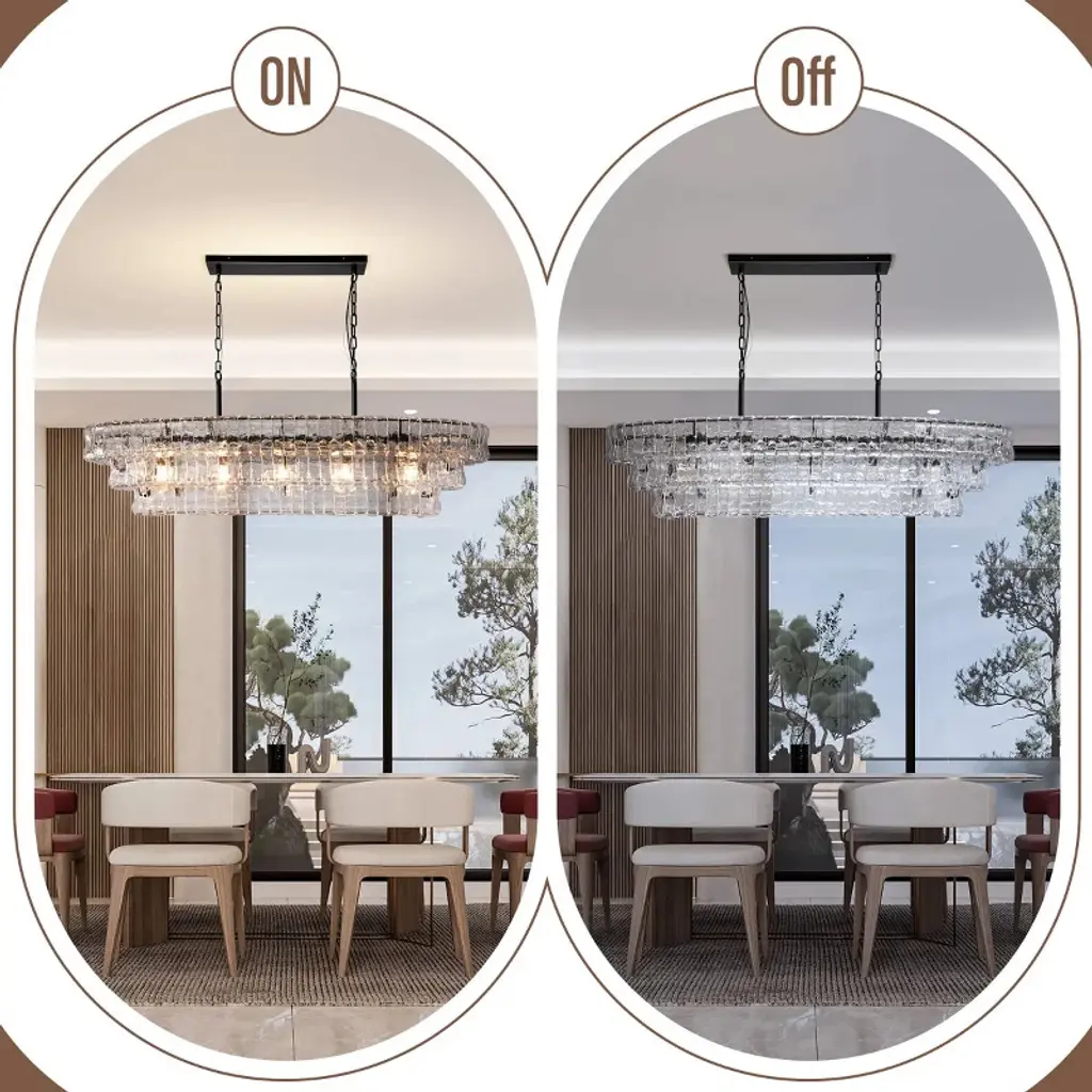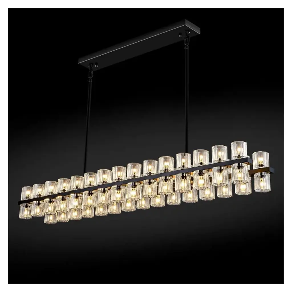 53.7" 5-lights Large Tiered Rectangle Chandelier Black