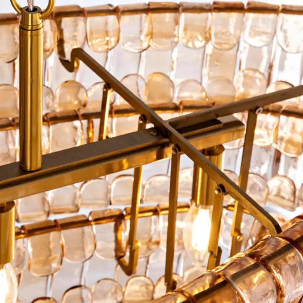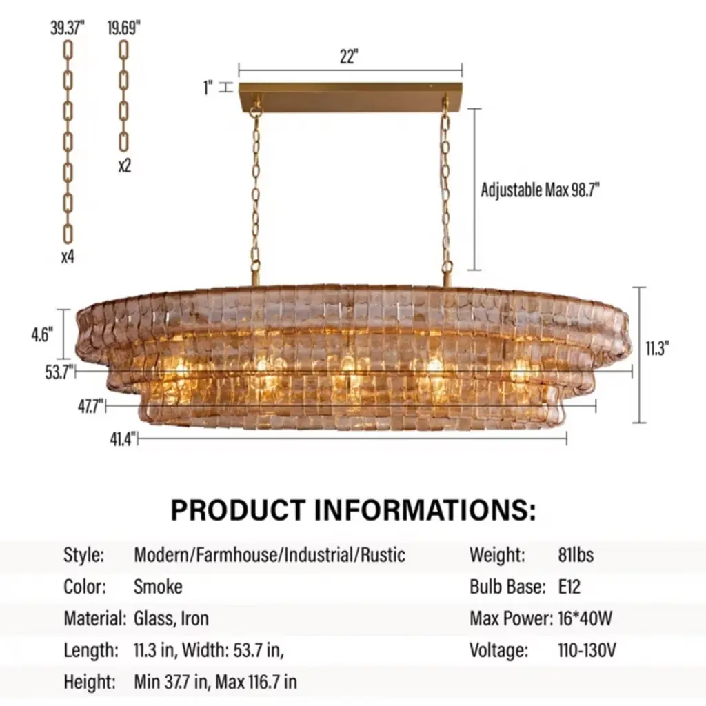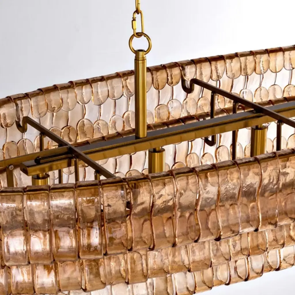 ransform your space with our exquisite country-inspired chandeliers. These stunning smoke-colored glass fixtures add elegance to any room. Perfect for living rooms and dining areas, they enhance your dining experience and create a warm, inviting atmosphere. Crafted with precision, the amber-colored glass rectangle chandeliers reflect light beautifully, making every space special. Whether you need a chandelier for the bedroom, living room, or kitchen island, our collection offers a variety of styles, including French country. Elevate your home with a functional and stylish lighting solution today!