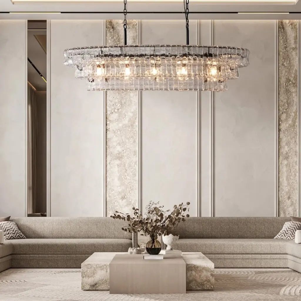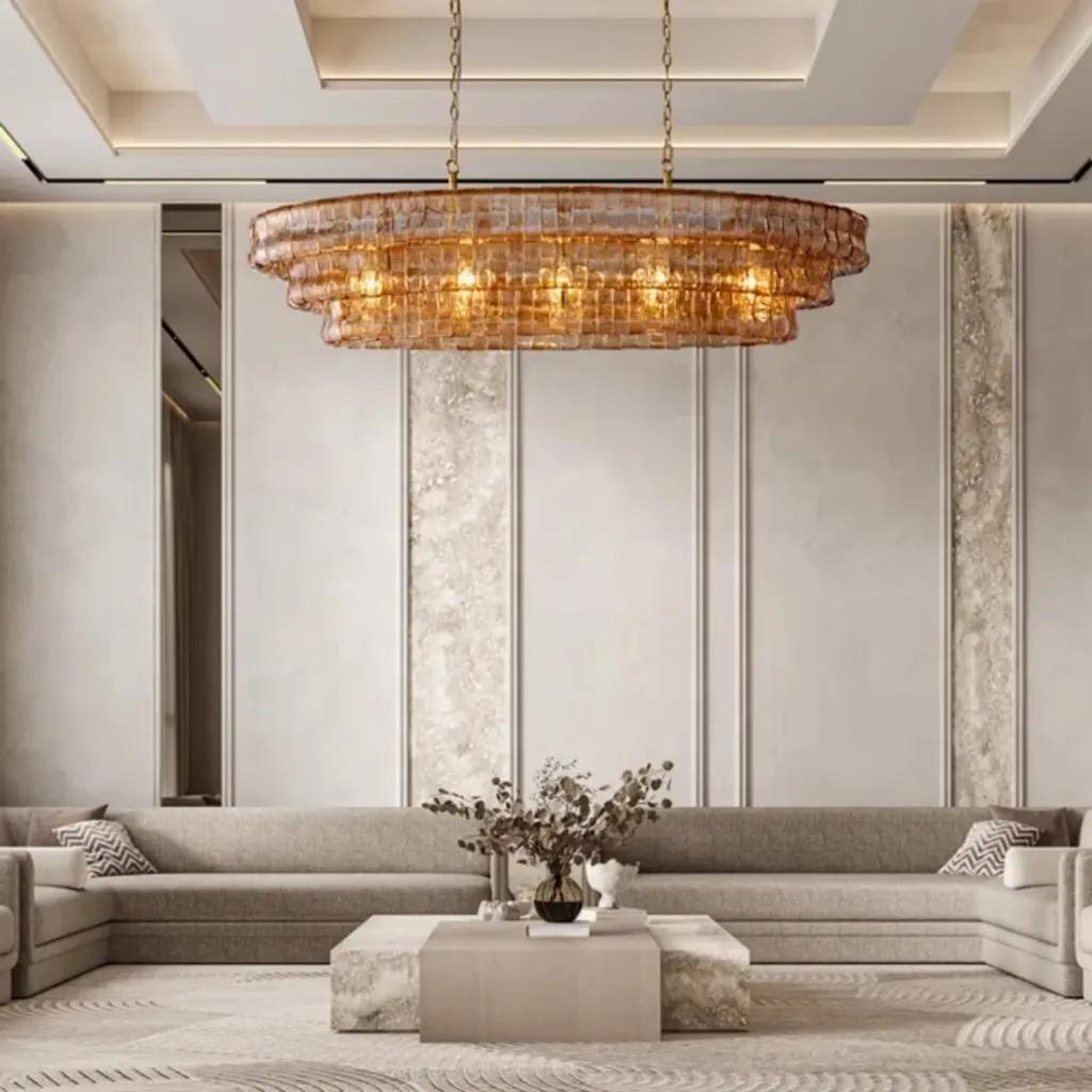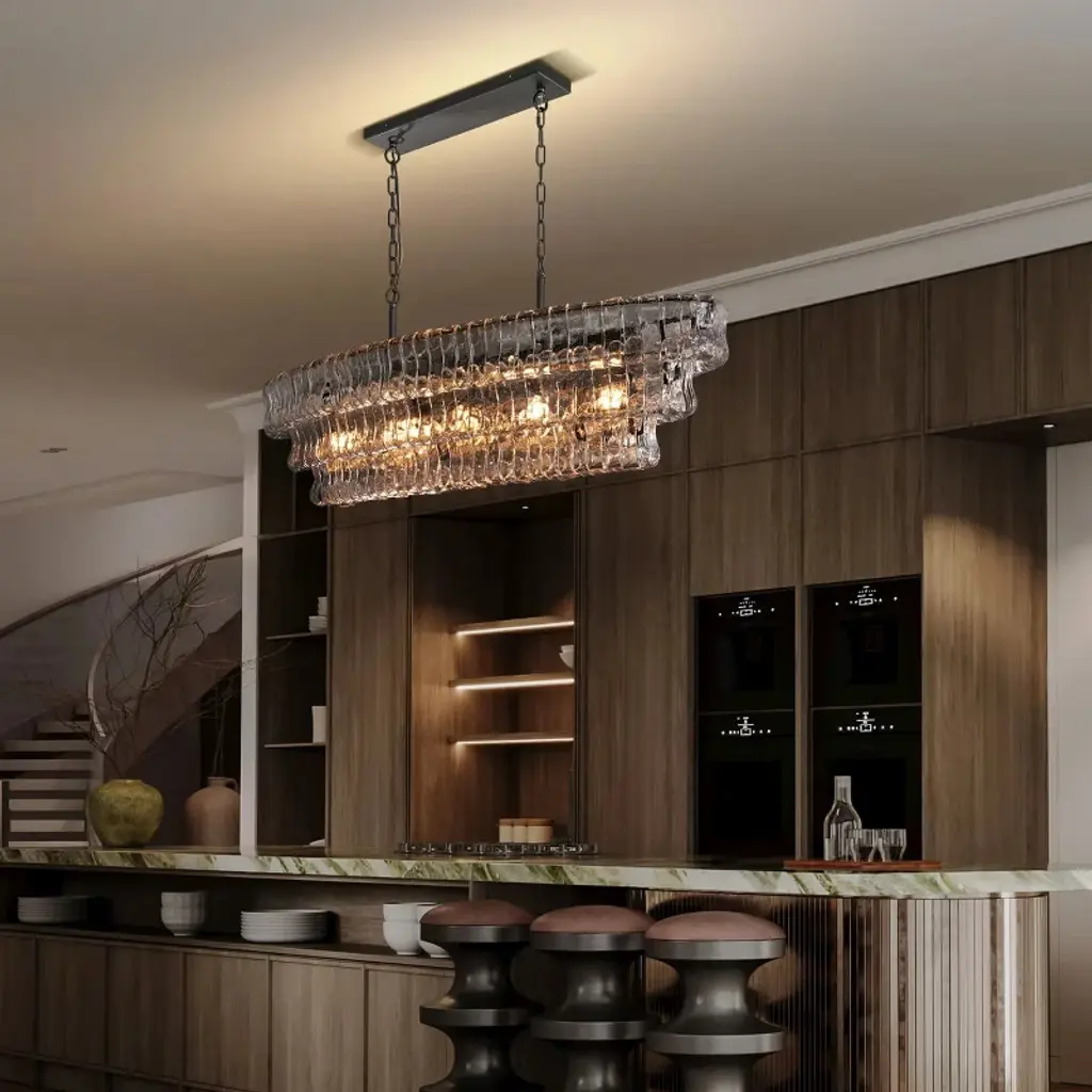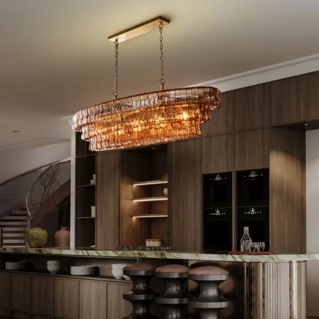 ransform your space with our exquisite country-inspired chandeliers. These stunning smoke-colored glass fixtures add elegance to any room. Perfect for living rooms and dining areas, they enhance your dining experience and create a warm, inviting atmosphere. Crafted with precision, the amber-colored glass rectangle chandeliers reflect light beautifully, making every space special. Whether you need a chandelier for the bedroom, living room, or kitchen island, our collection offers a variety of styles, including French country. Elevate your home with a functional and stylish lighting solution today!