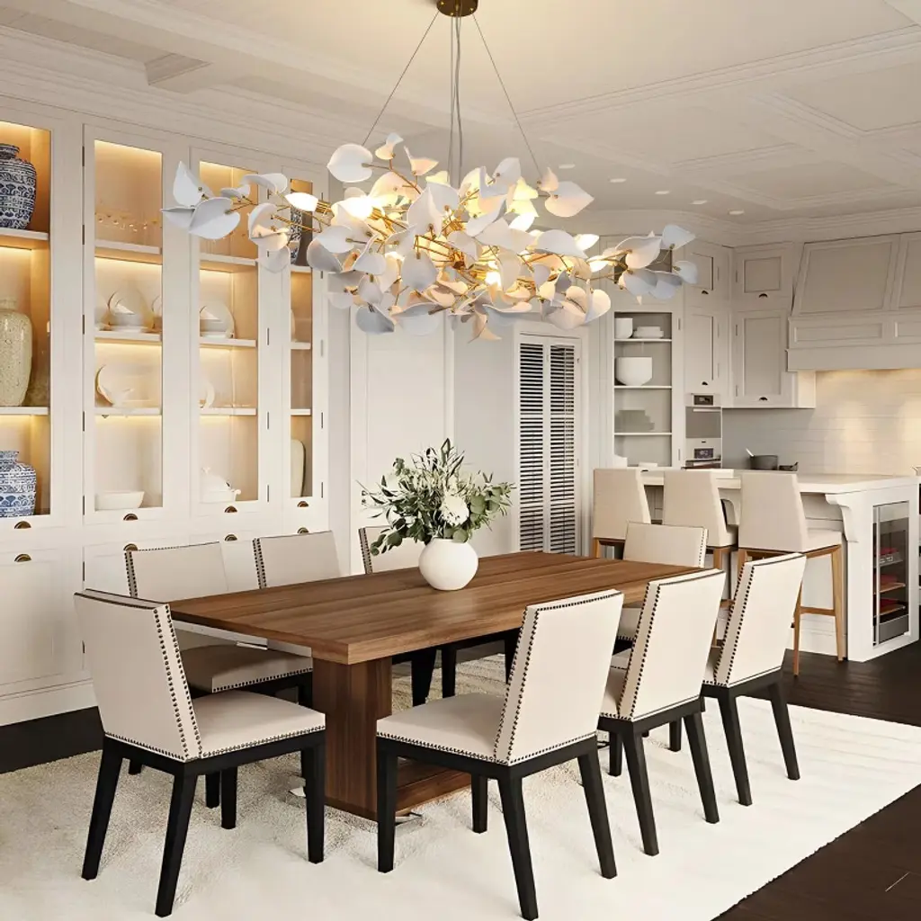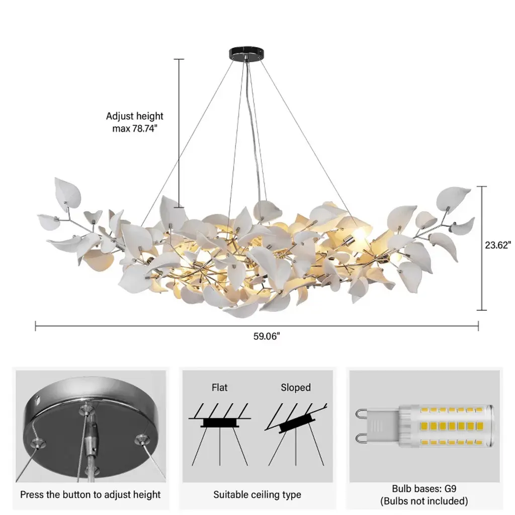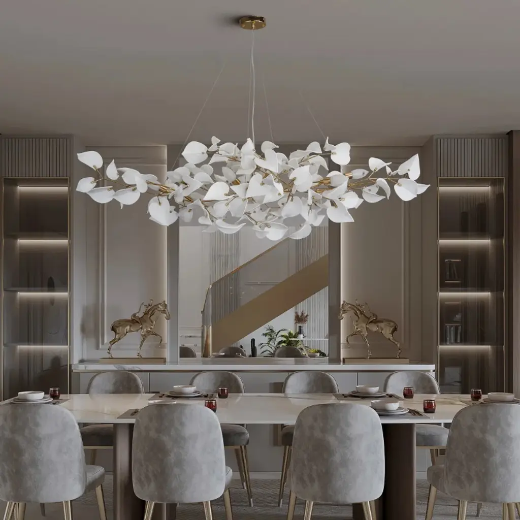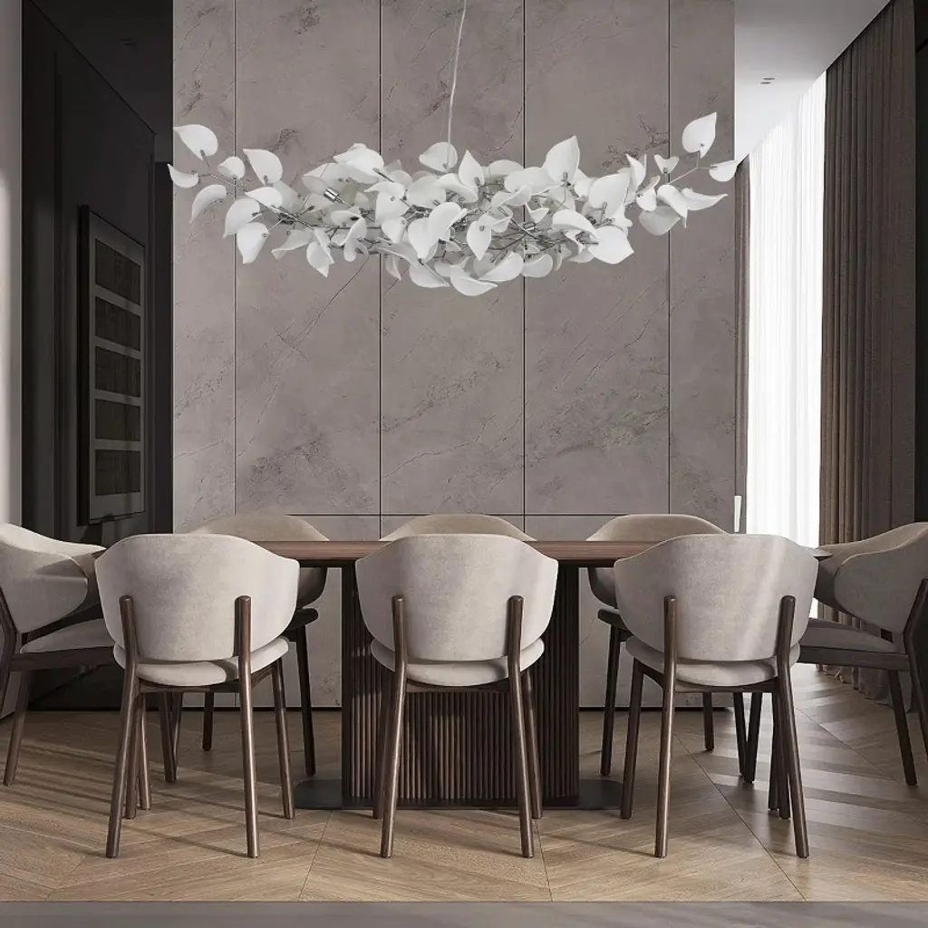 Each ceramic leaf and metal accent is meticulously handcrafted by skilled artisans, ensuring a flawless fusion of organic beauty and modern sophistication. The delicate veins of the leaves and the lustrous finish of the metal create a captivating interplay of textures, transforming your dining space into a gallery of refined artistry.