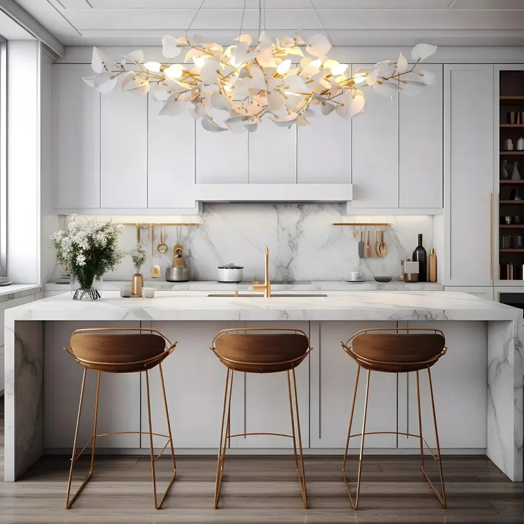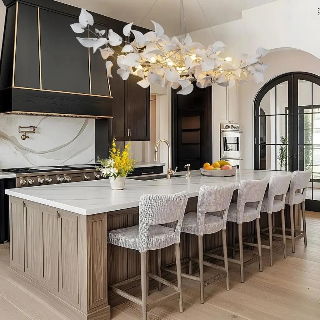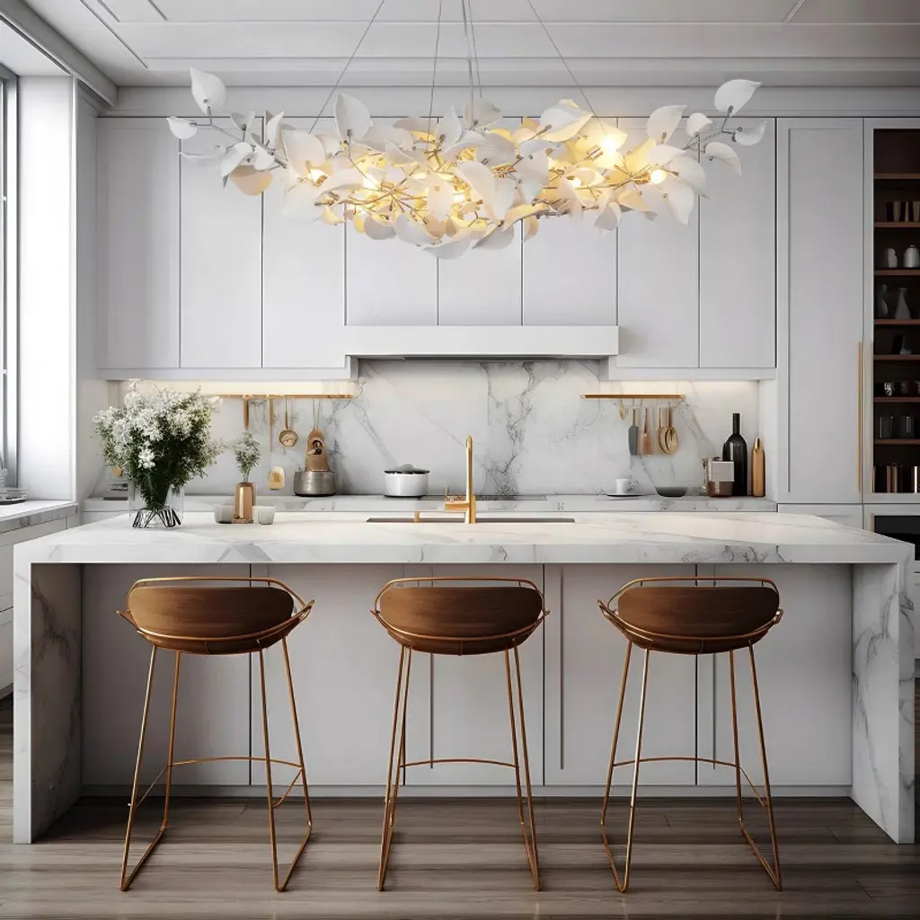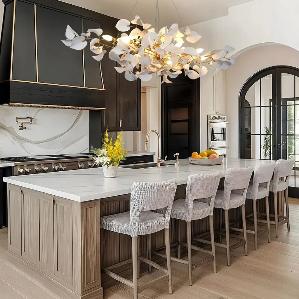 Each ceramic leaf and metal accent is meticulously handcrafted by skilled artisans, ensuring a flawless fusion of organic beauty and modern sophistication. The delicate veins of the leaves and the lustrous finish of the metal create a captivating interplay of textures, transforming your dining space into a gallery of refined artistry.