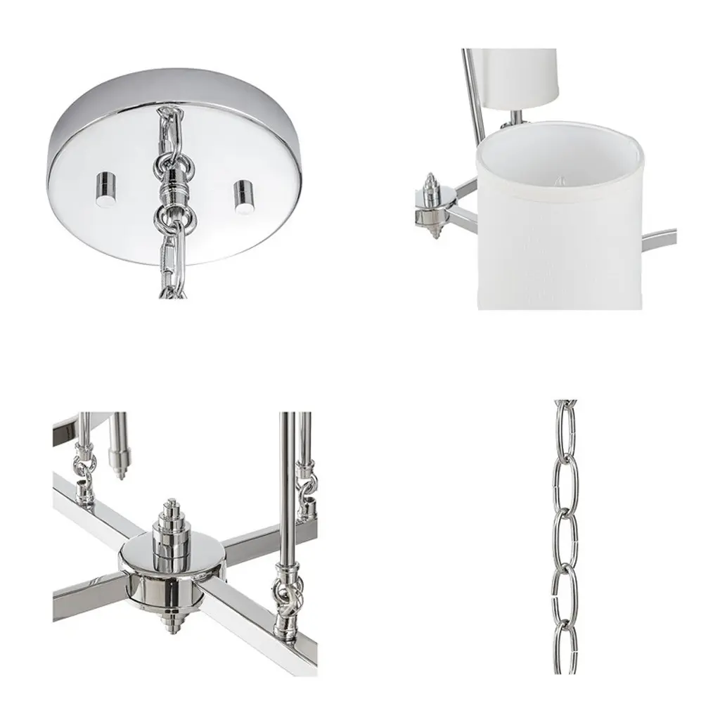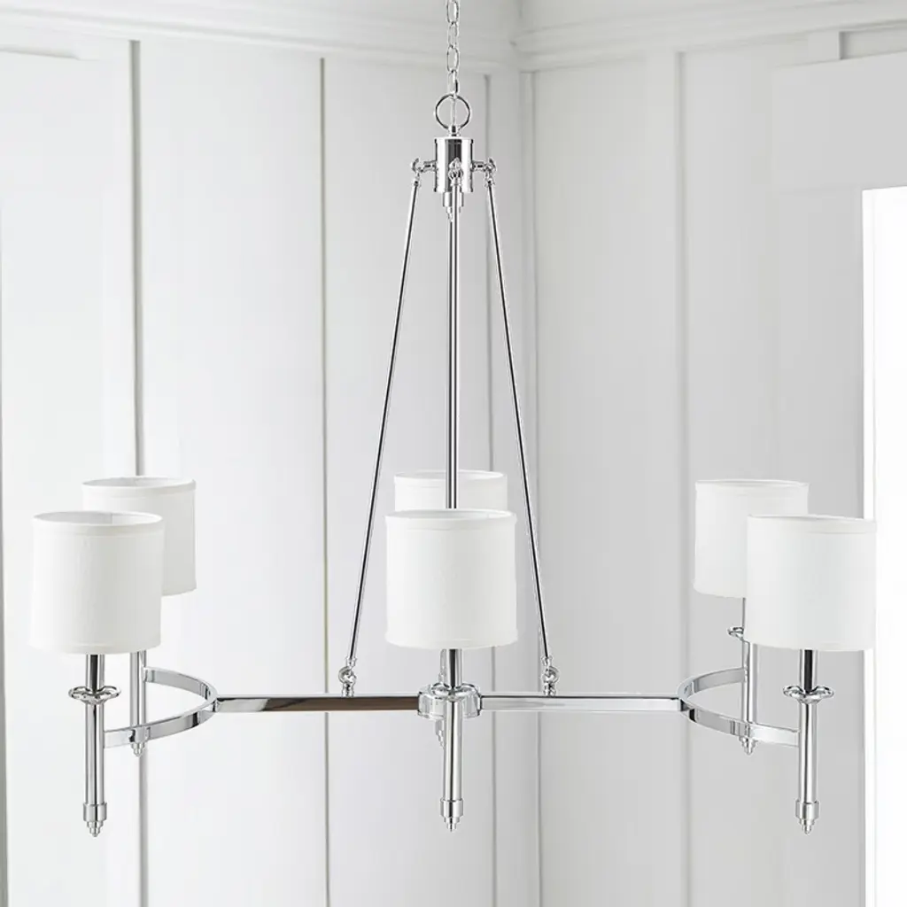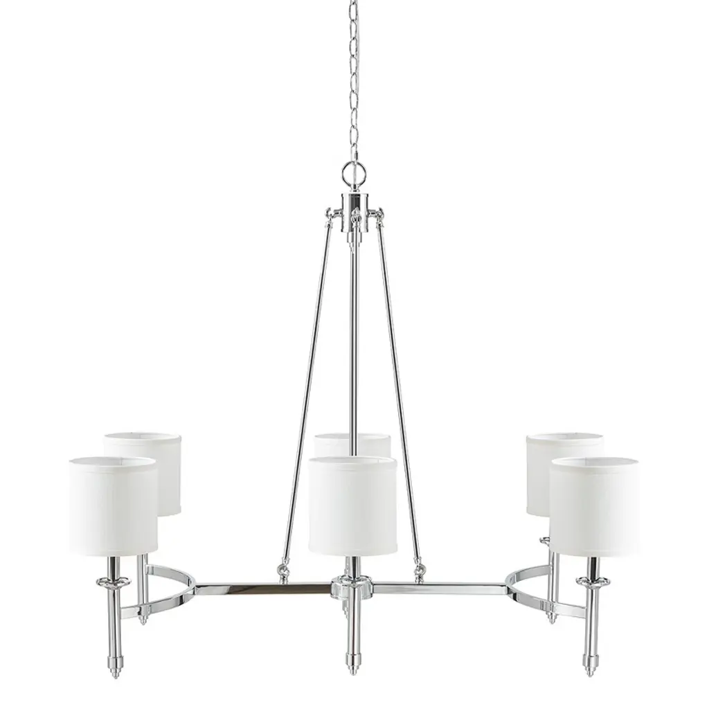 6-light Chandelier With Fabric Drum Shades Chrome See Below