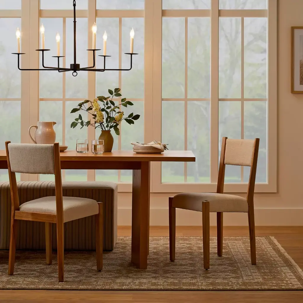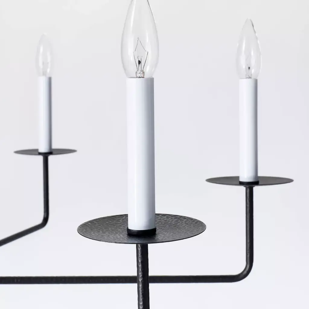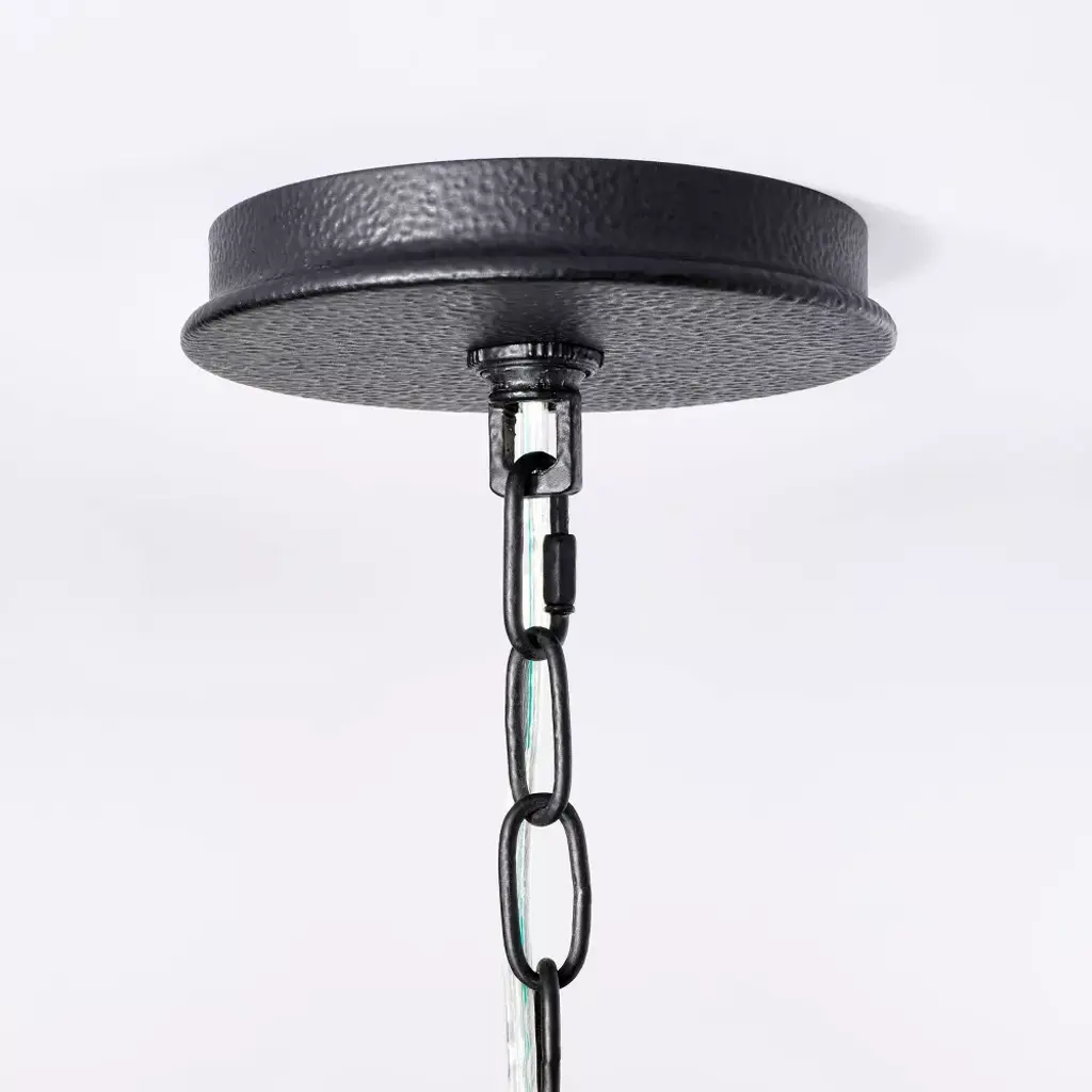 Illuminate your indoor space while keeping your aesthetic crisp and stylish with the 6-Light Hammered Metal Chandelier from Threshold™ designed with Studio McGee. Boasting an open design, this chandelier showcases a sleek metal body with candle-like lights to illuminate your space in style. The simple design in a black finish blends effortlessly with any decor, while the one-way light setting allows for easy functionality. Whether you hang it over your dining room table or suspend it above the kitchen island, this chandelier makes a stylish addition to your indoor space.
