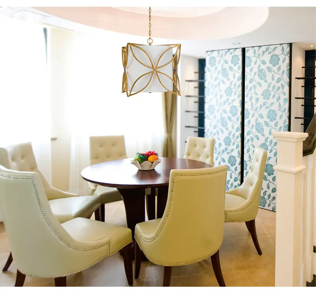 19.5 Inch Metal Chandelier in French GoldDurable Metal Construction6 Foot ChainShips In One Cartonbase diameter: 15.5shade top 1: 15.5shade bottom 1: 15.5shade side: 15wattage: 60bulb base: E27shade color: whiteswitch type: Hardwiredlight: 3• Lightbulb(s) not included