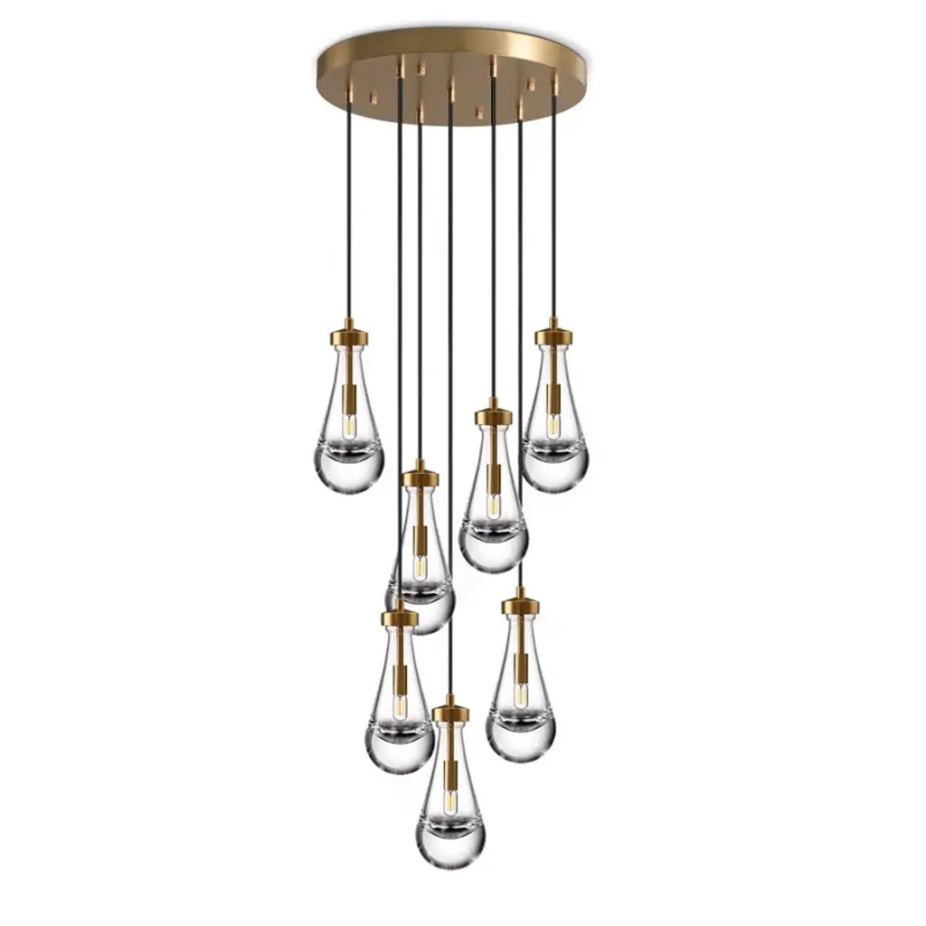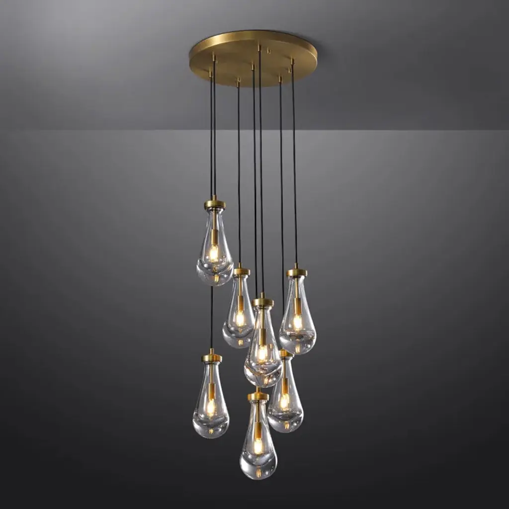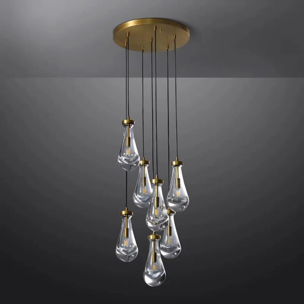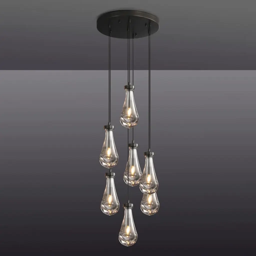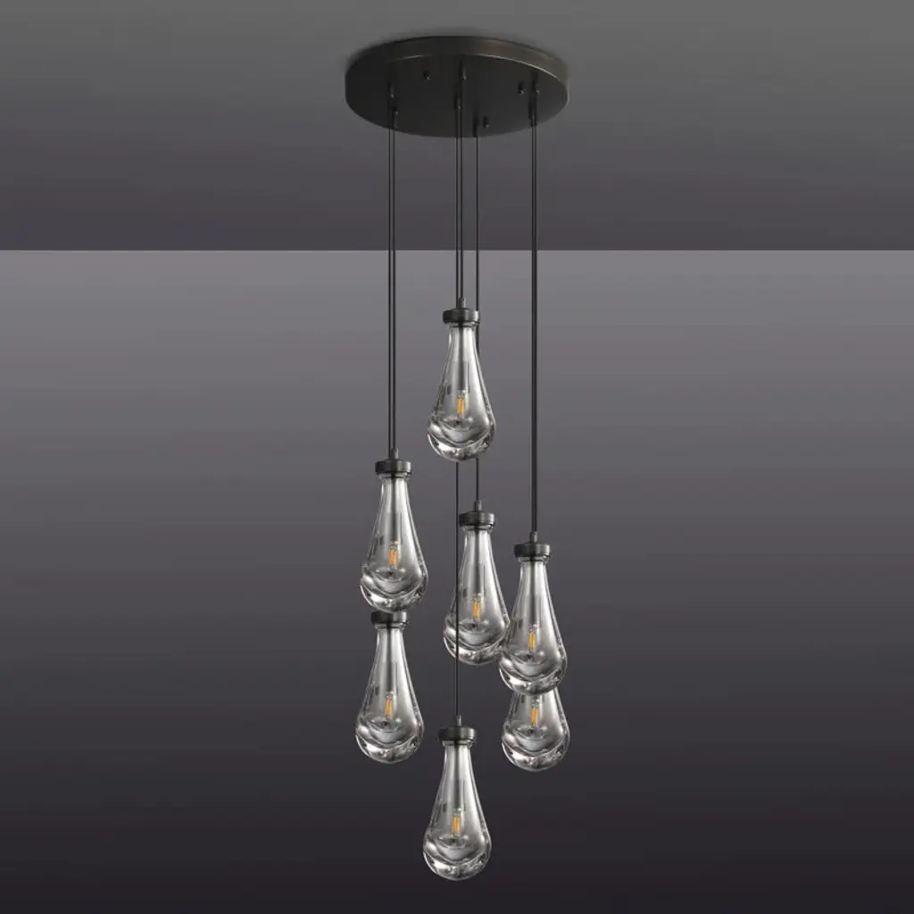 7-light Nickel Raindrop Solid Thick Glass Chandelier