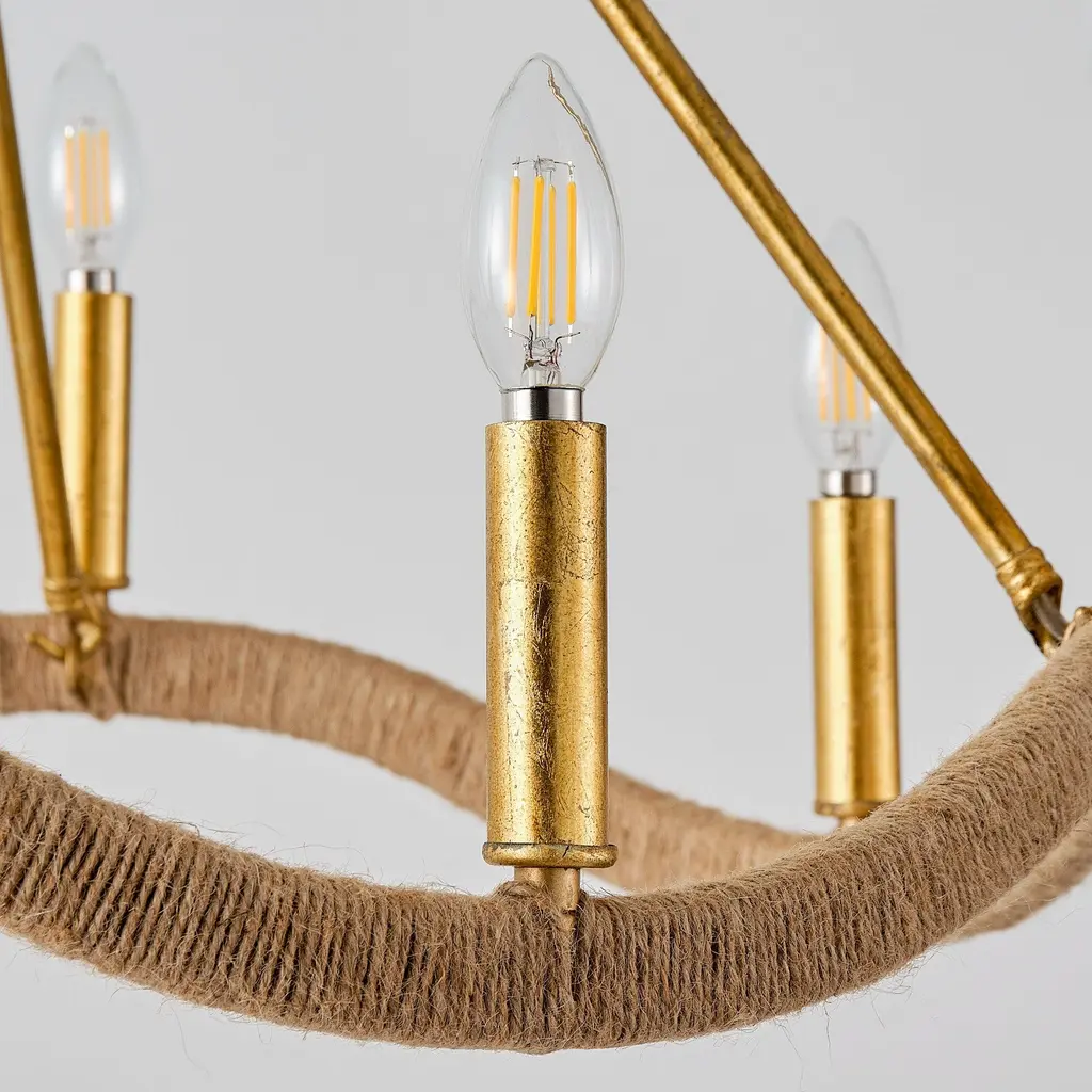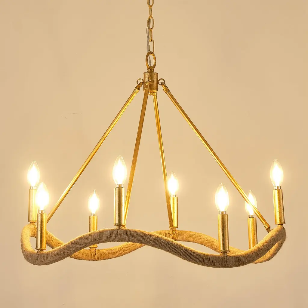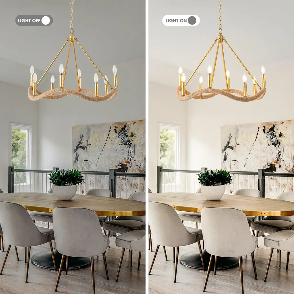 Illuminate your space with this golden modern candle chandelier. This 8-Light Golden Modern Candle Chandelier is an exquisite piece of lighting that will add elegance and class to any room. It features a stunning gold finish that exudes warmth and sophistication. The chandelier is designed with a modern twist on the classic candle style, giving it a unique and eye-catching appearance. The chandelier houses eight lights, providing ample illumination for your space. Each light is carefully placed to create a beautiful and balanced visual effect. The light it produces is soft and comfortable, making it perfect for creating a cozy and inviting atmosphere. Made from high-quality materials, this chandelier is durable and long-lasting. It's easy to install and compatible with a variety of bulb types, allowing you to customize the lighting to suit your needs. Whether you want to use it in your dining room, living room, or bedroom, this 8-Light Golden Modern Candle Chandelier will surely elevate your home's decor.