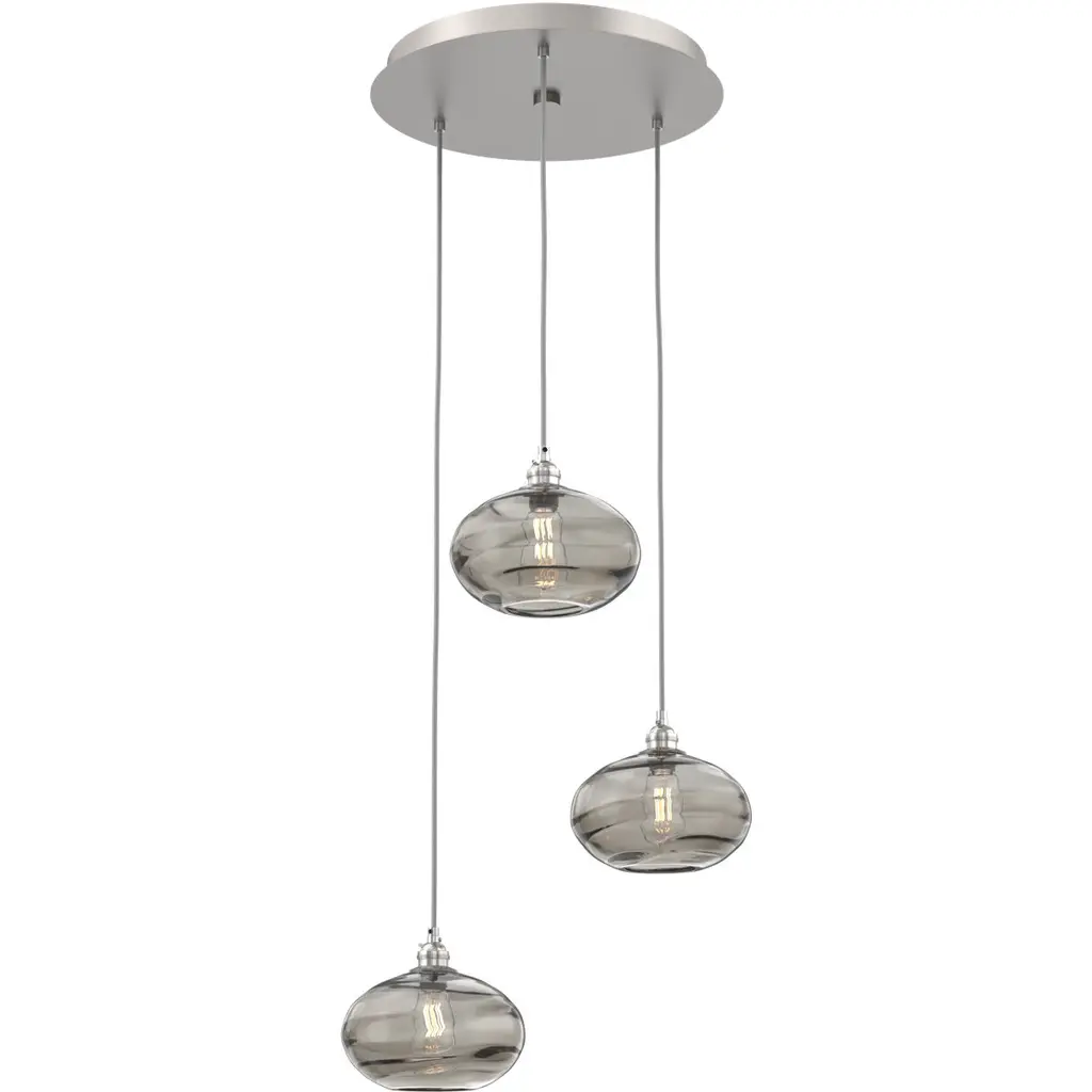 Aalto Led 17.3 Inch Matte Black Chandelier Ceiling Light In Optic Rib Smoke, 2700k Led, Round Multi-Port