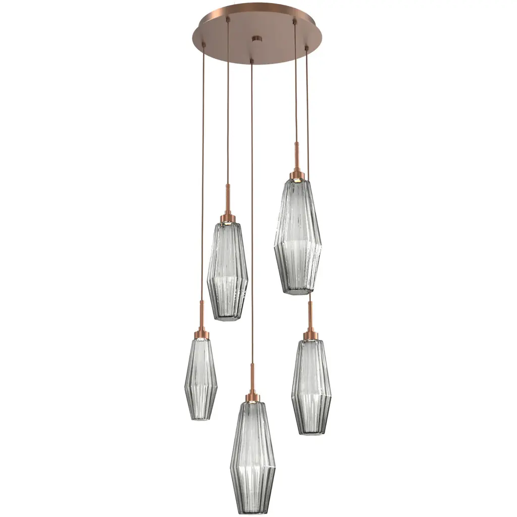 Aalto Round Multi-Port-05-Novel Brass-Optic Rib Blown Glass - Smoke-Brass Cloth Braided Cord-LED