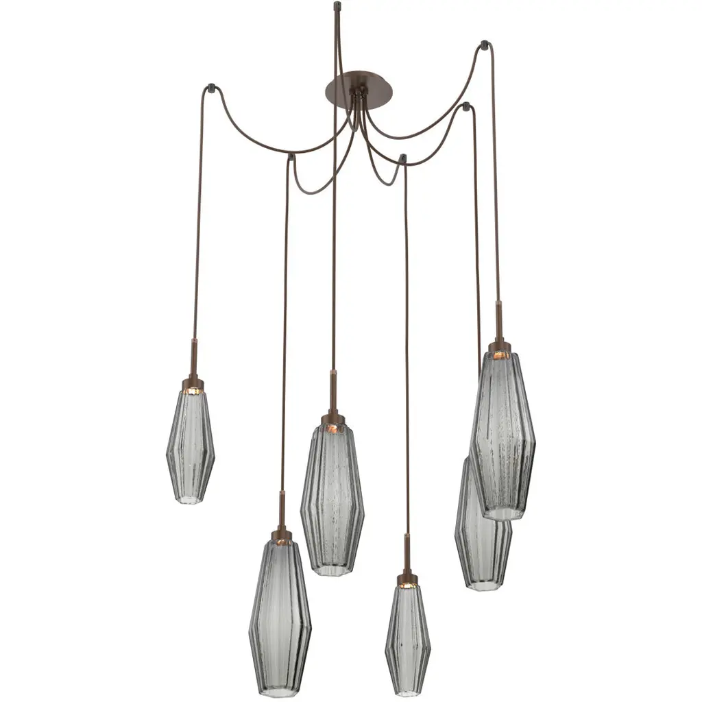 Aalto Square Multi-Port-09-Matte Black-Optic Rib Blown Glass - Smoke-Black Cloth Braided Cord-LED