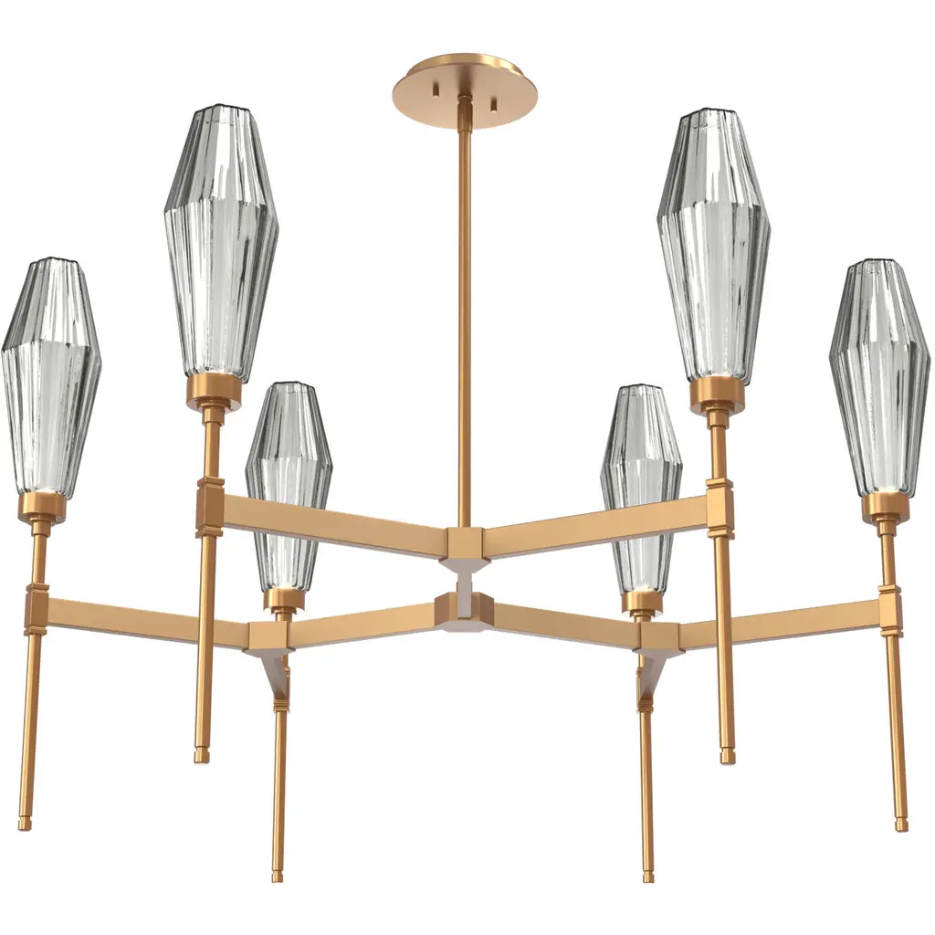 Aalto Round Chandelier-37-Metallic Beige Silver-Optic Rib Blown Glass - Smoke-Threaded Rod Suspension-LED