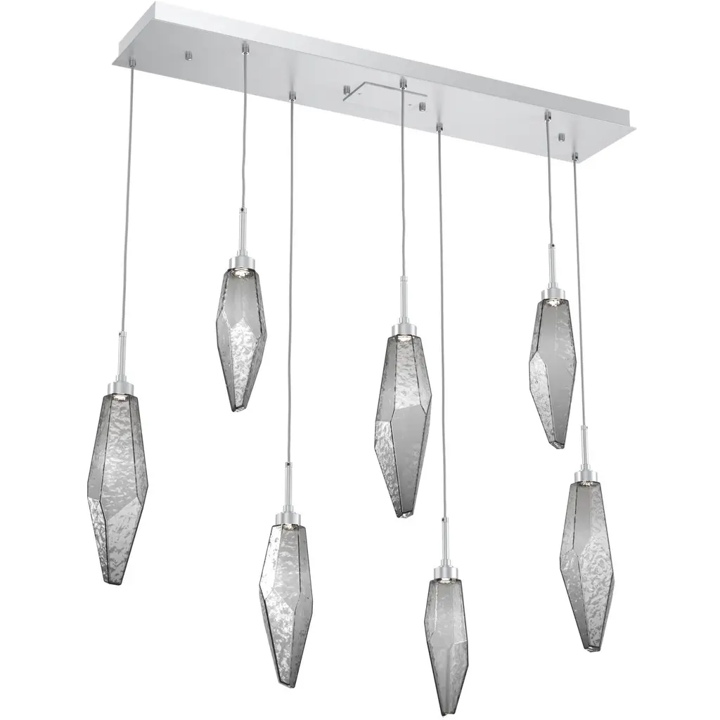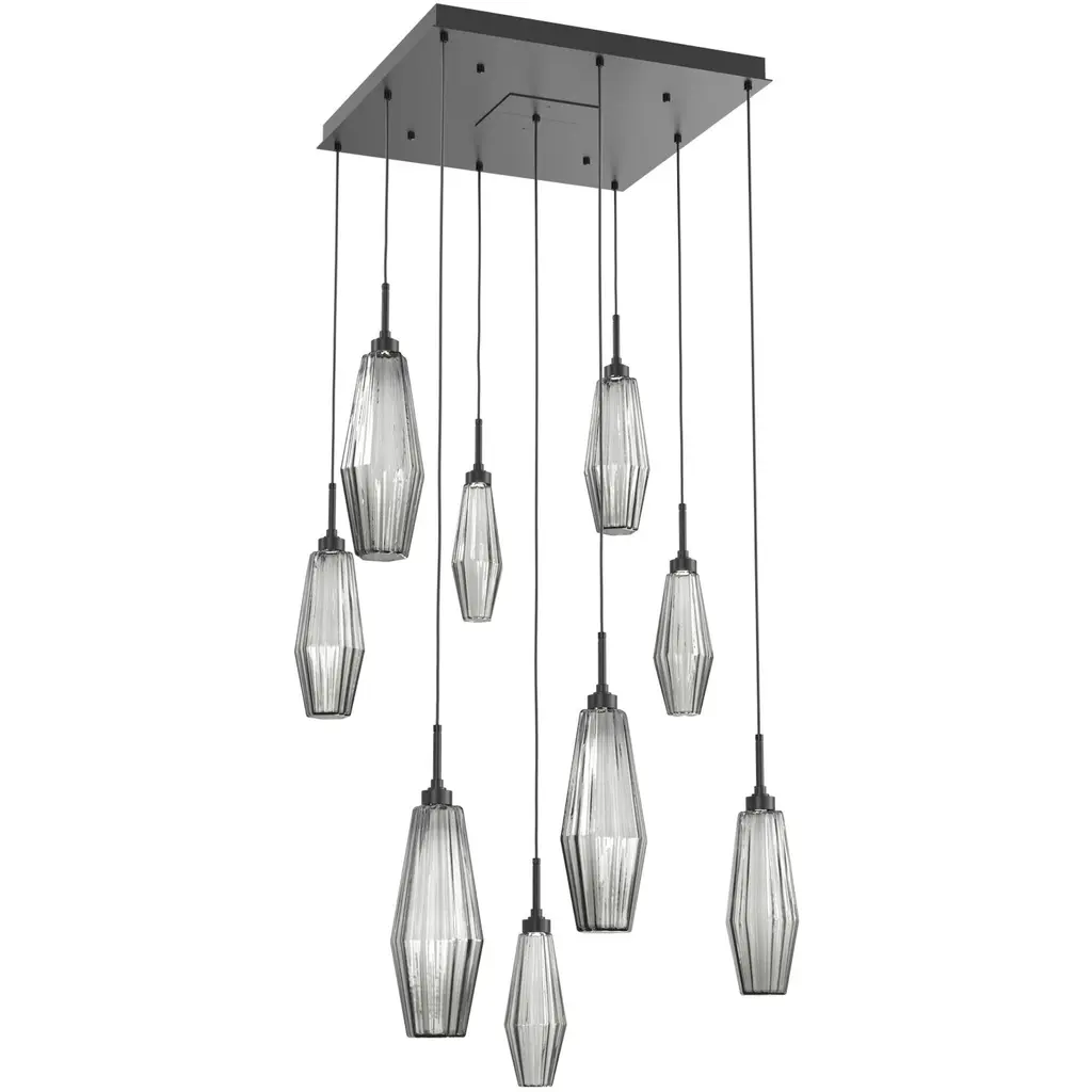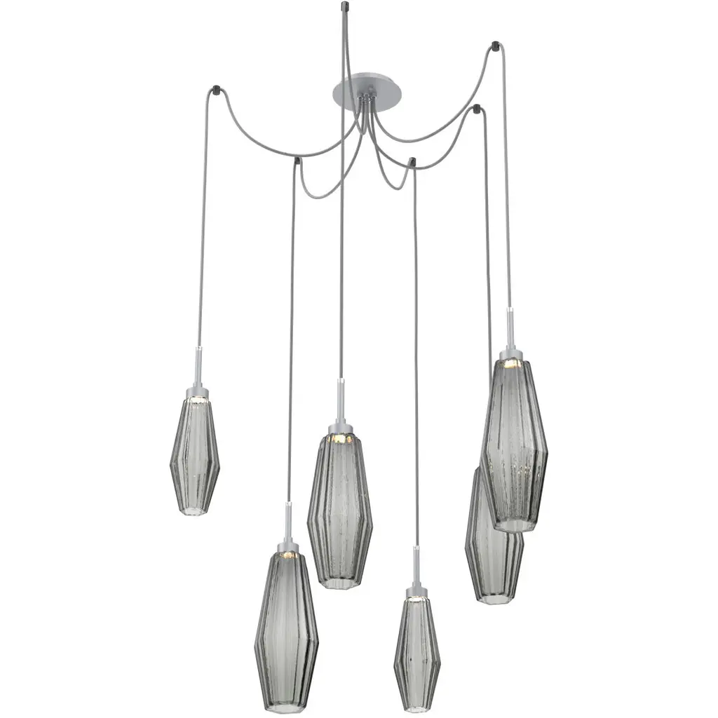 Aalto Square Multi-Port-12-Classic Silver-Optic Rib Blown Glass - Smoke-Silver Cloth Braided Cord-LED