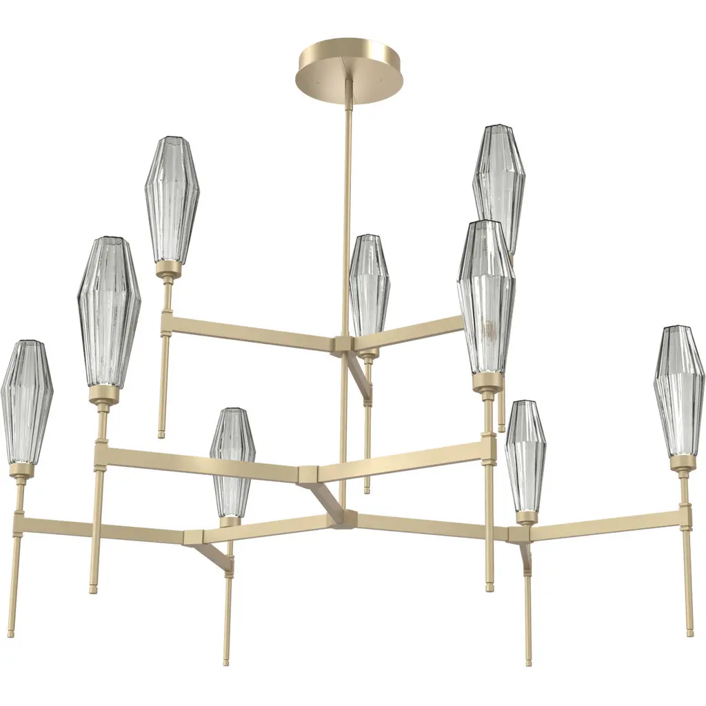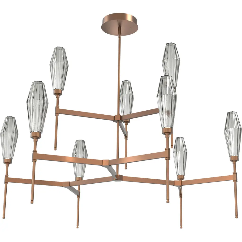 Aalto Round Belvedere Chandelier-54-Flat Bronze-Optic Rib Blown Glass - Smoke-Threaded Rod Suspension-LED