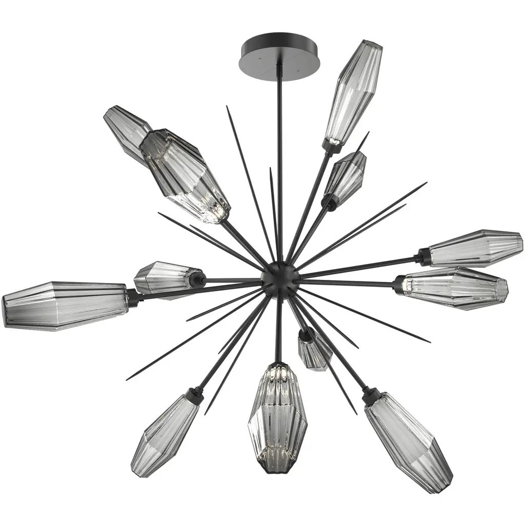 Aalto Starburst-0B-Gilded Brass-Optic Rib Blown Glass - Smoke-Threaded Rod Suspension-LED