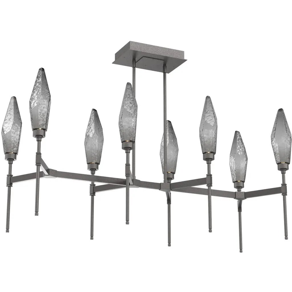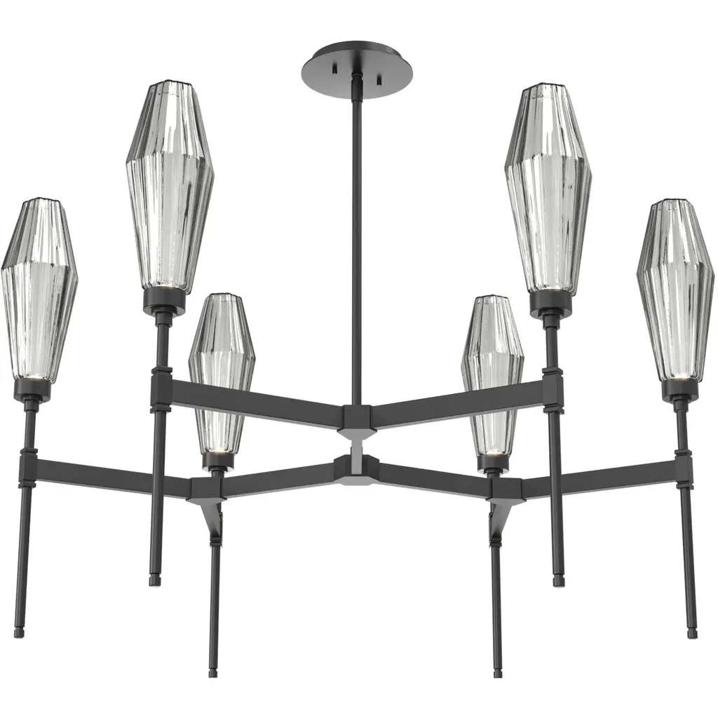 Aalto Round Chandelier-37-Graphite-Optic Rib Blown Glass - Smoke-Threaded Rod Suspension-LED