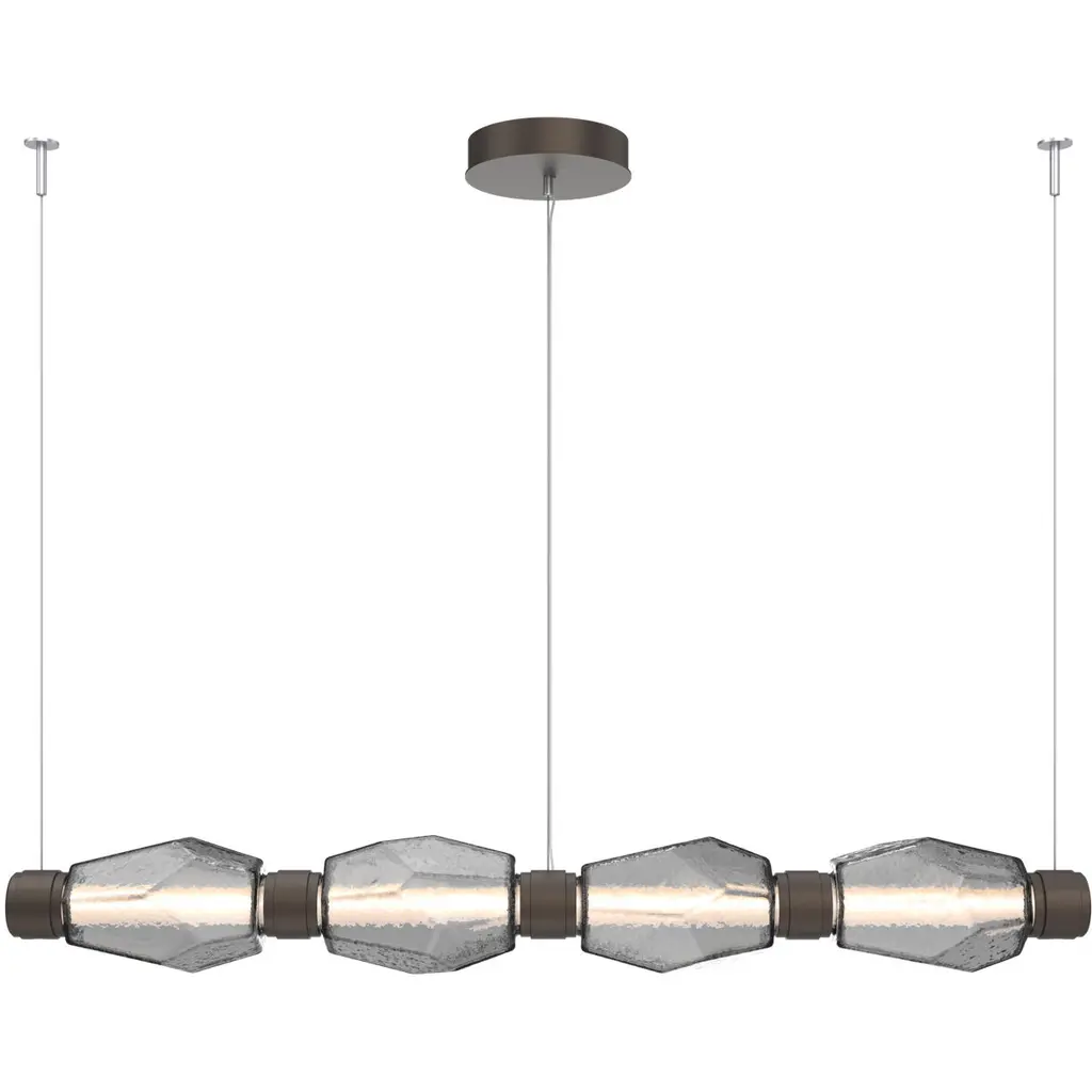 Aalto Mandrel Linear - 52-Inch-Novel Brass-Smoke Blown Glass-Stainless Cable-LED - 3000K