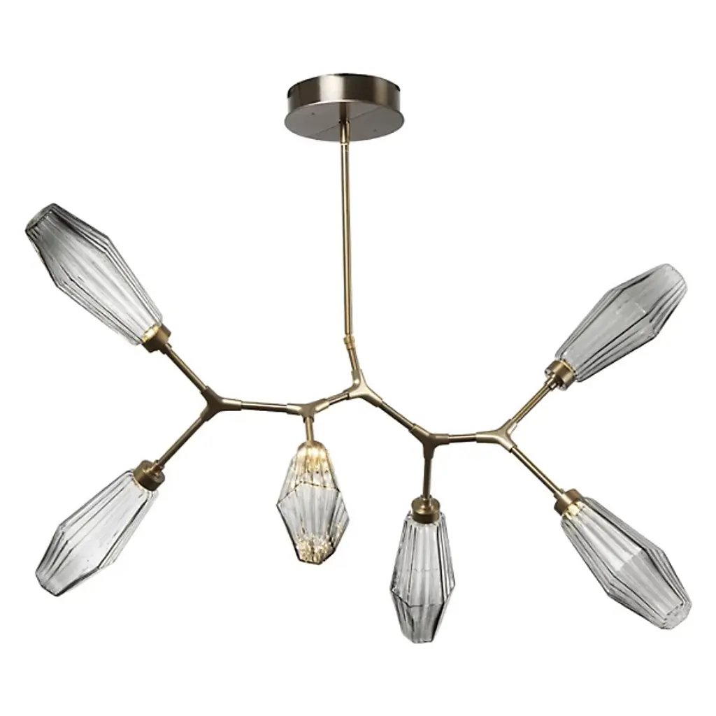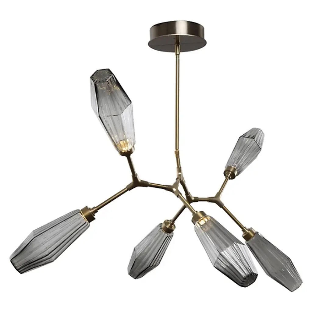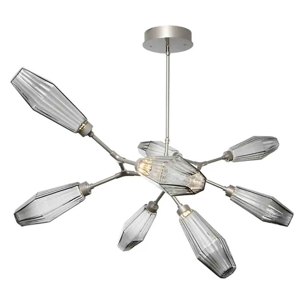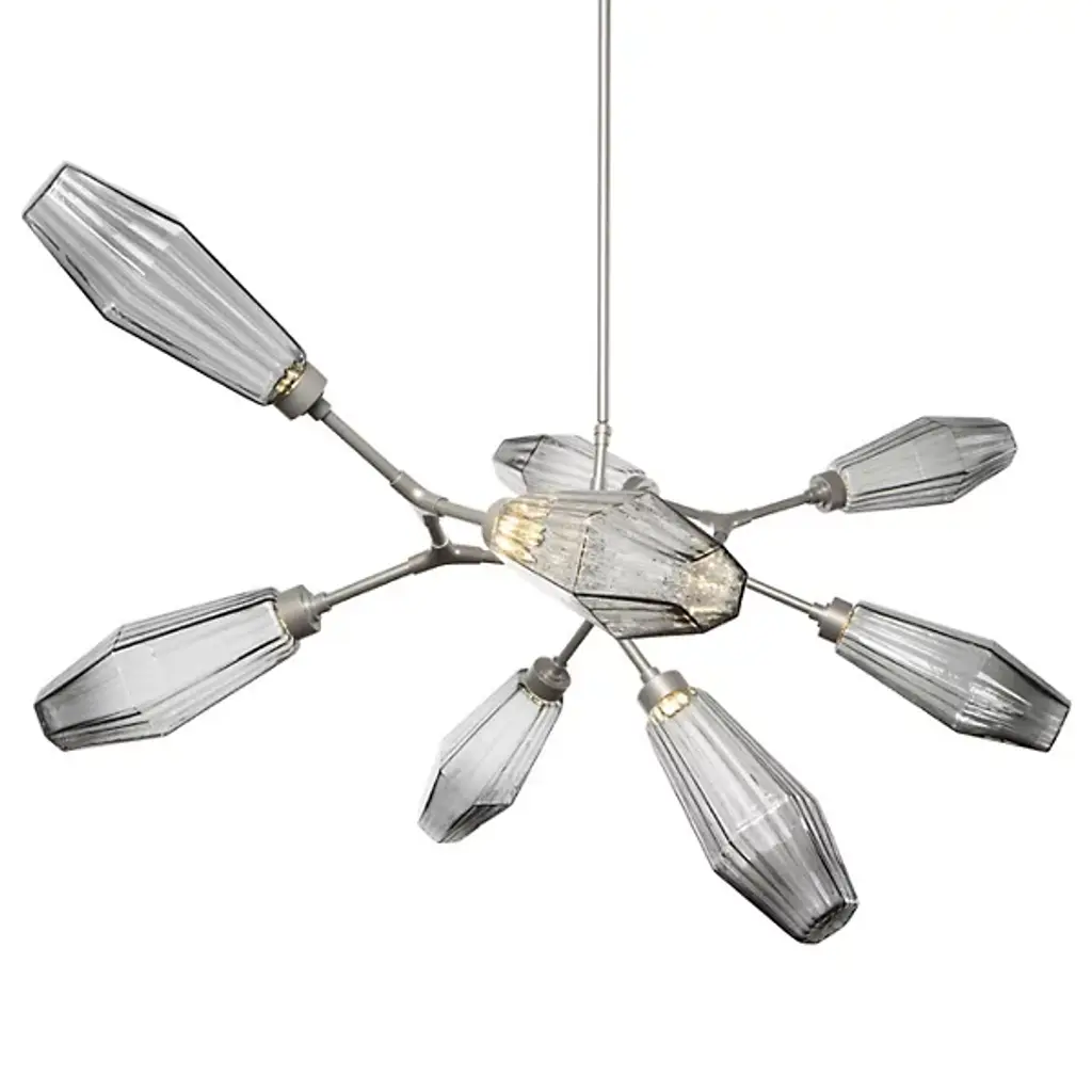 The Aalto Modern Branch LED Chandelier by Hammerton Studio blends vintage and modern elements within this glamorous piece. Composed like a branch with flower buds set along it, this chandelier pairs together integrated LED-lit artisan blown glass pieces that have a tapered and beautiful composition with hand-polished steel stems. Juxtaposing organic and modern shapes, this bold and versatile piece elevates spaces with a lovely layer of light and some elegant flair.