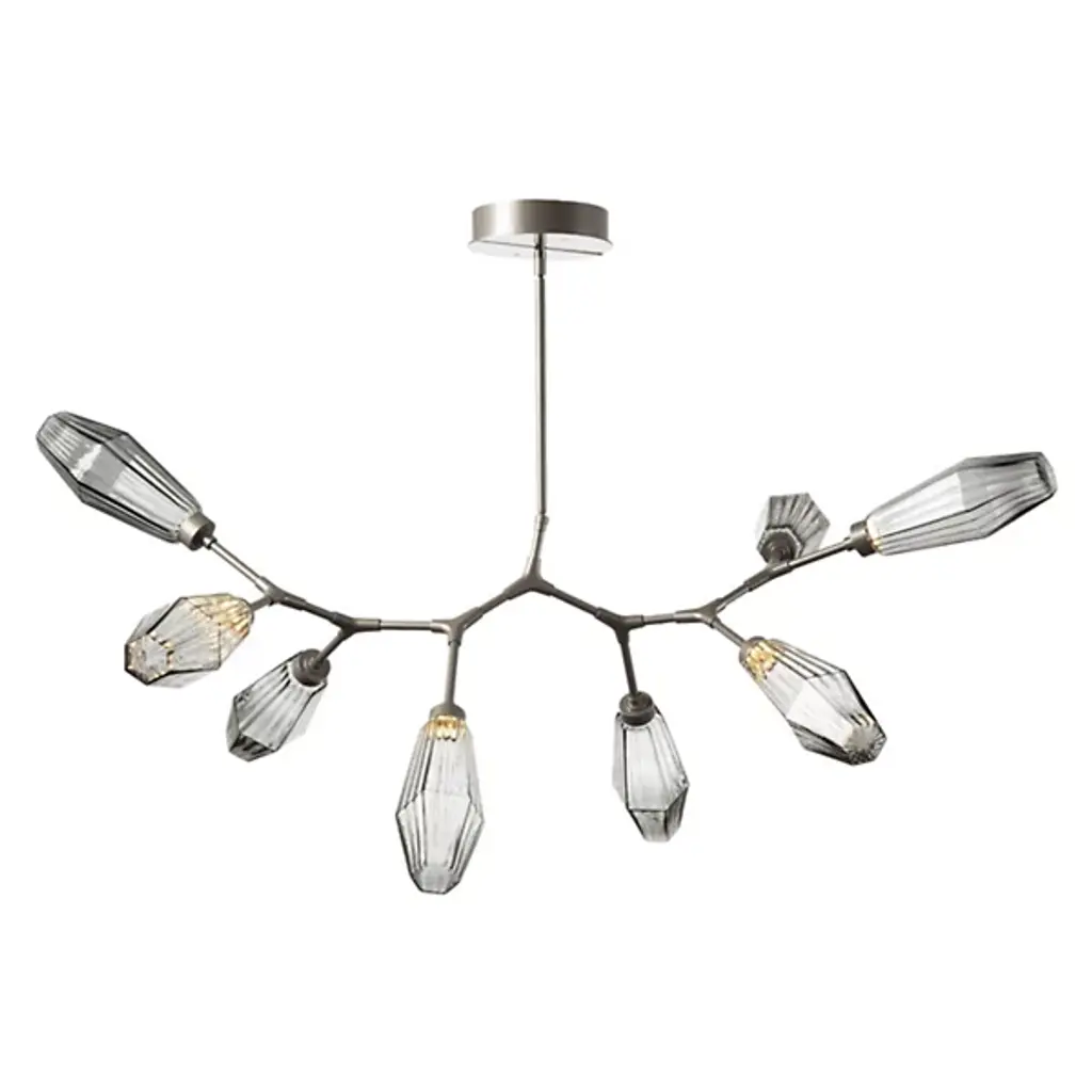 The Aalto Modern Branch LED Chandelier by Hammerton Studio blends vintage and modern elements within this glamorous piece. Composed like a branch with flower buds set along it, this chandelier pairs together integrated LED-lit artisan blown glass pieces that have a tapered and beautiful composition with hand-polished steel stems. Juxtaposing organic and modern shapes, this bold and versatile piece elevates spaces with a lovely layer of light and some elegant flair.