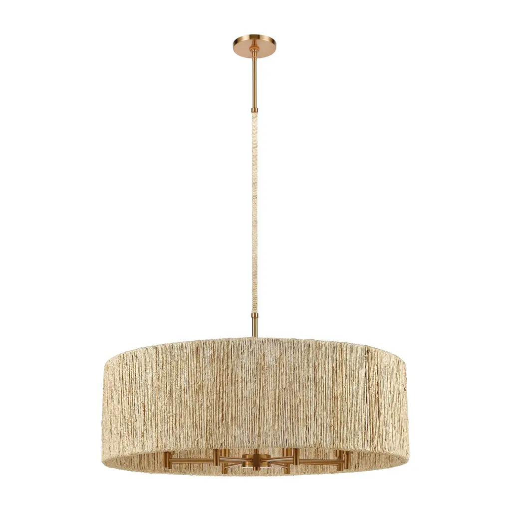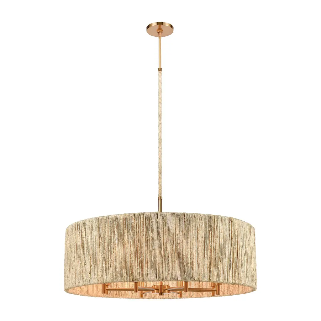 Abaca 8-light Chandelier In Satin Brass With Abaca Rope