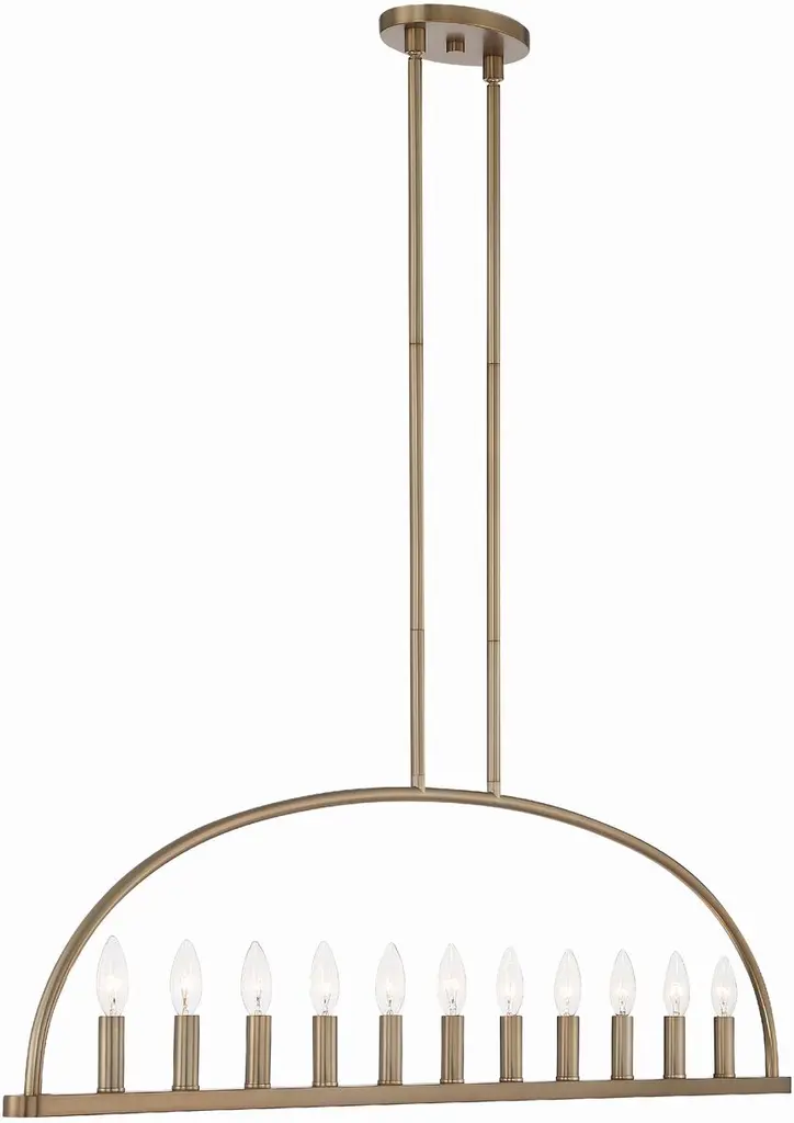 Ideal over a dining table or a kitchen counter, this 11-bulb linear chandelier demonstrates how sophisticated simplicity can be.