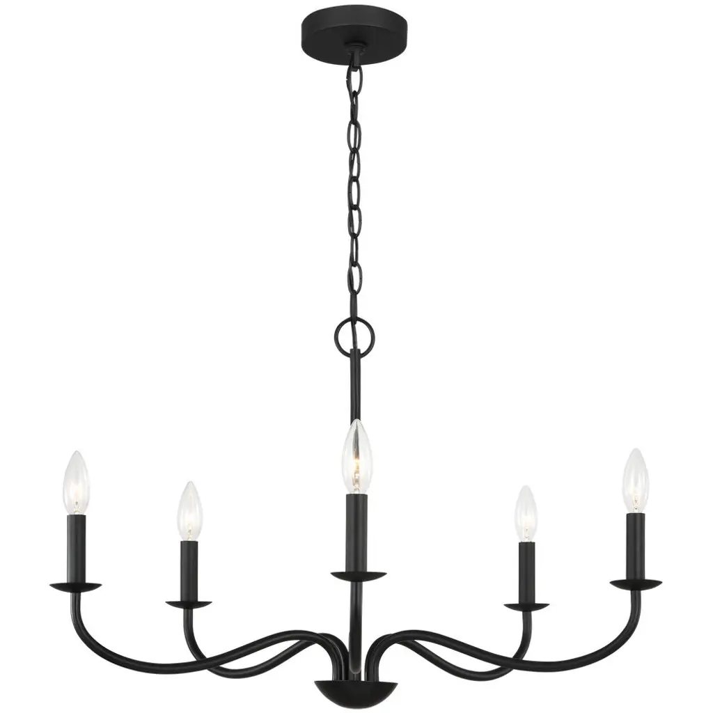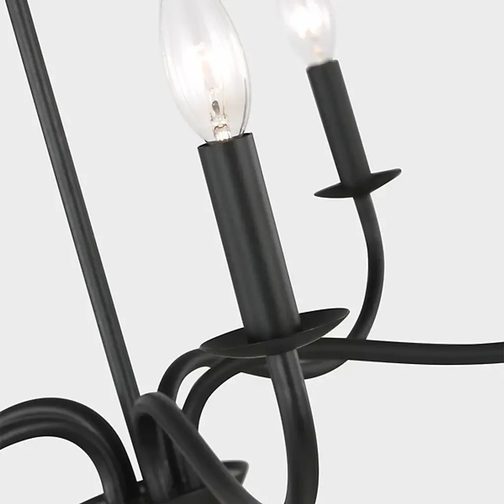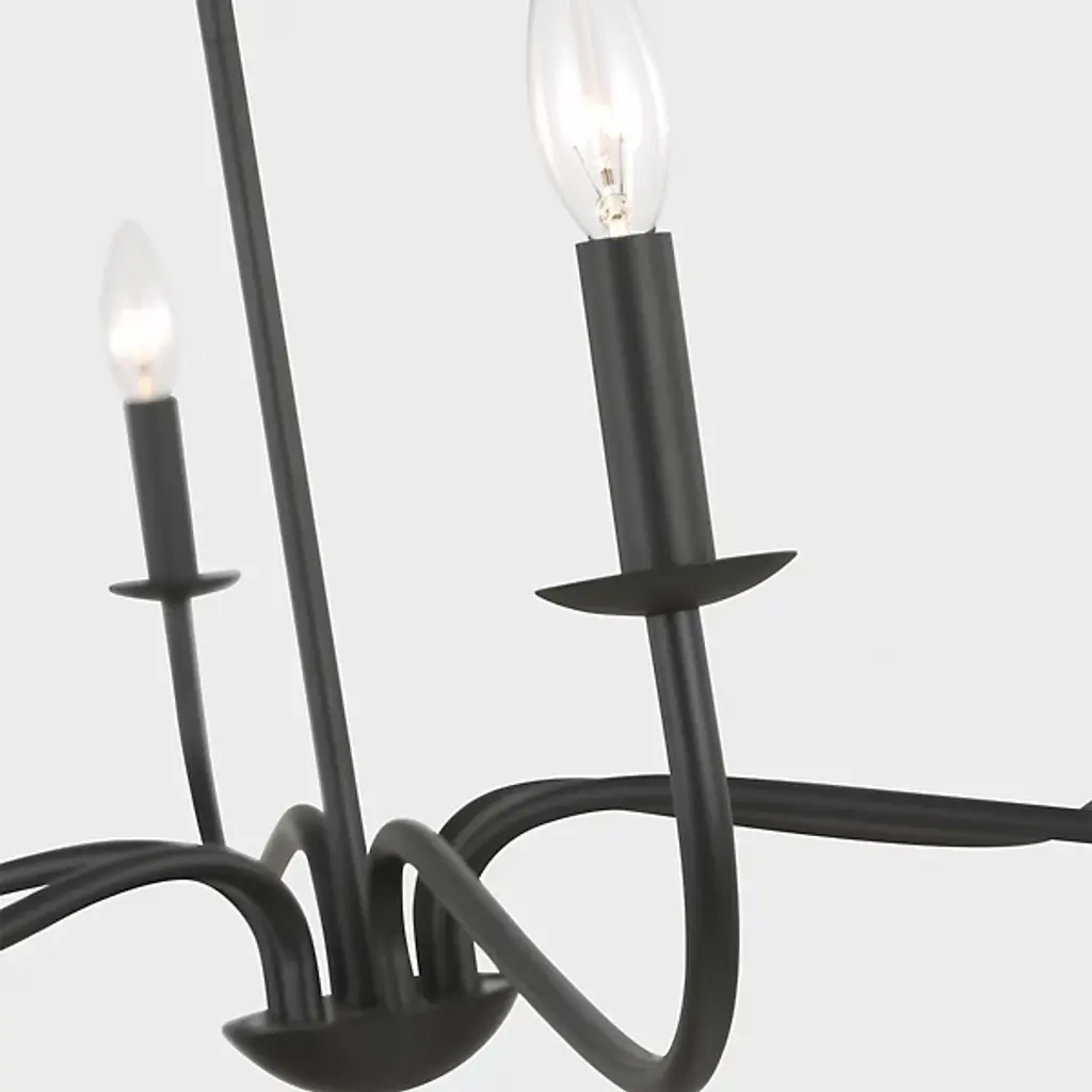 The Abells Multi-Light Chandelier from Generation Lighting employs soft sweeping arms that curve gracefully outward from a central hub to create its signature wide, low profile. The exposed candelabra-style sockets eliminate traditional shades, allowing the bulb forms to become integral design elements. Each arm follows a gentle arc that establishes rhythmic balance across the fixture's horizontal span. This chandelier can accommodate sloped ceiling installations and offers full dimming capabilities for varied atmospheric control throughout different lighting scenarios.