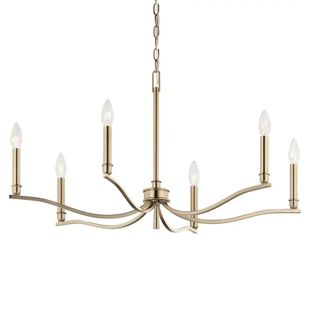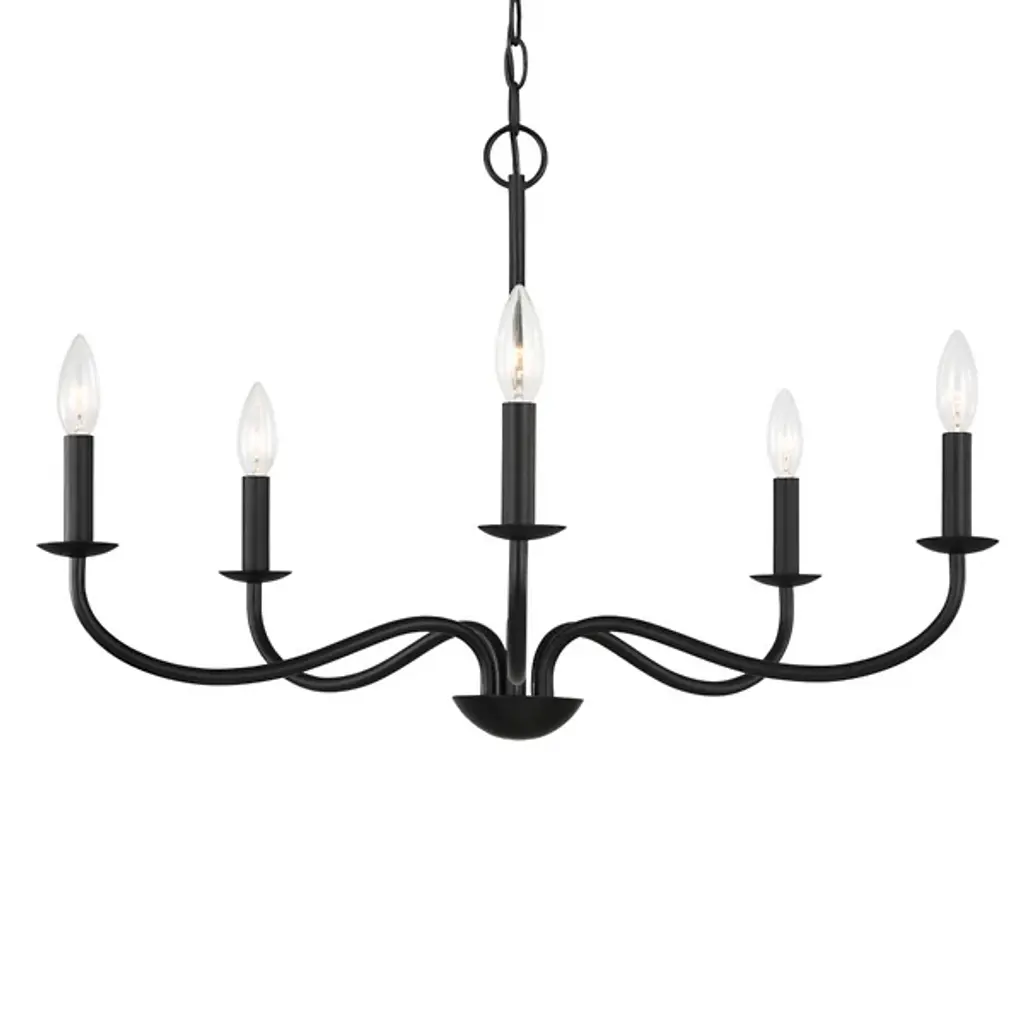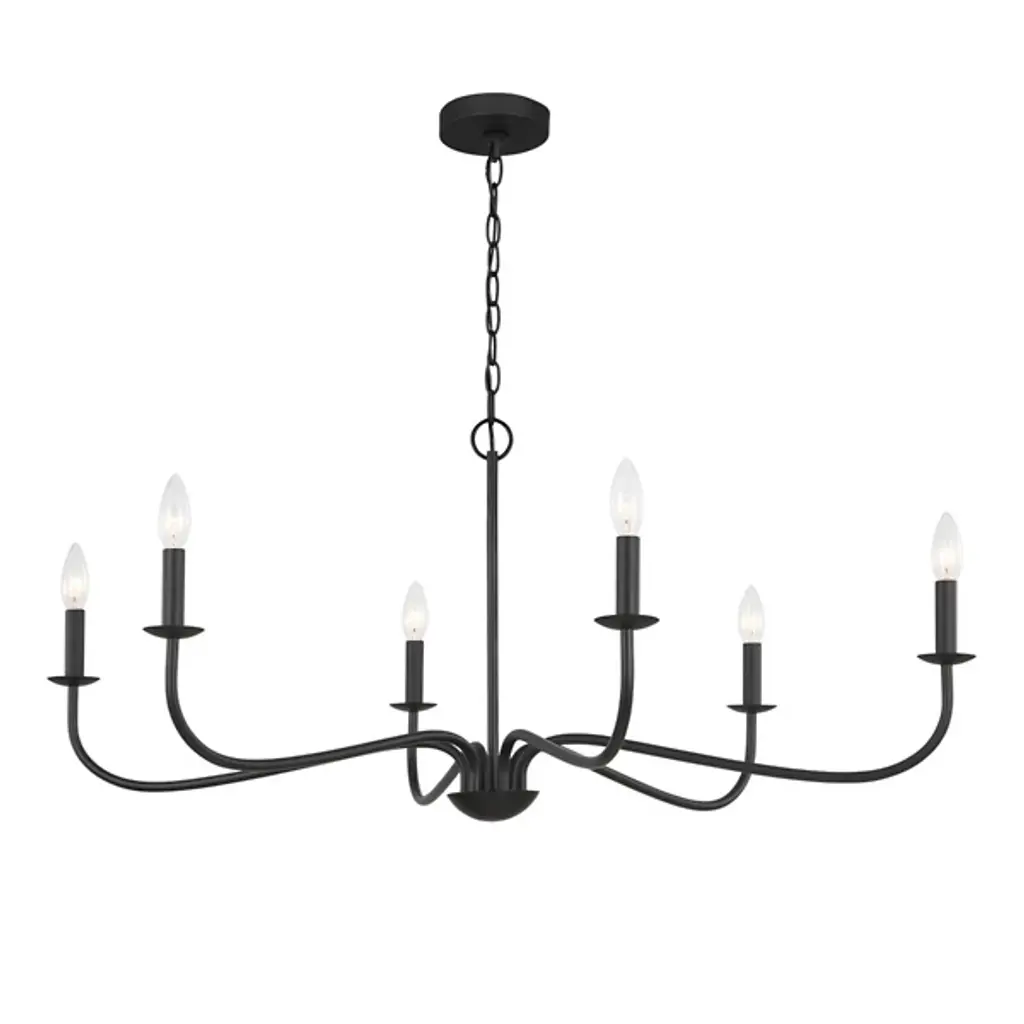 The Abells Multi-Light Chandelier from Generation Lighting employs soft sweeping arms that curve gracefully outward from a central hub to create its signature wide, low profile. The exposed candelabra-style sockets eliminate traditional shades, allowing the bulb forms to become integral design elements. Each arm follows a gentle arc that establishes rhythmic balance across the fixture's horizontal span. This chandelier can accommodate sloped ceiling installations and offers full dimming capabilities for varied atmospheric control throughout different lighting scenarios.