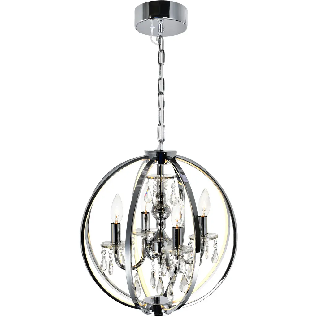 Turn even the most overlooked spaces into standout areas with the Abia 16" Chrome Contemporary Chandelier. This LED-compatible 4-light fixture blends modern elegance with a hint of glam, thanks to its chrome finish and glistening crystal accents. Perfectly suited for a foyer, hallway, or luxurious bathroom, this up chandelier delivers both charm and character. Whether you're elevating an existing design or planning a total makeover, this dazzling piece will be a conversation starter. Finish: Chrome Fixture Width: 16" Light Count: 4 Bulb Base: E12 (Bulbs not included) Style: Contemporary / Glam Mount Type: Up Chandelier
