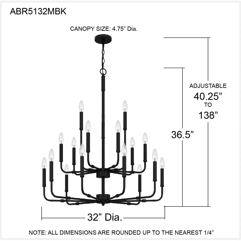 Abner 18 Light 32 Inch Matte Black Chandelier Ceiling Light