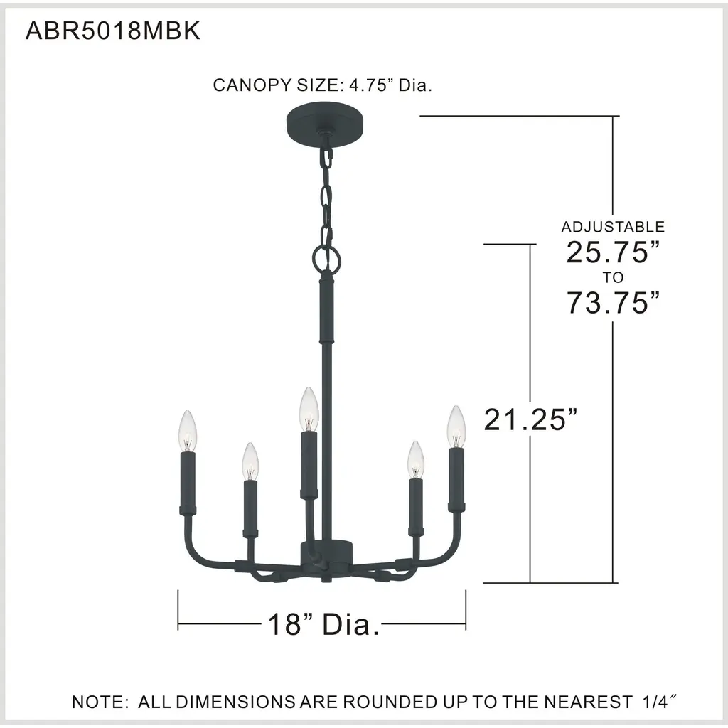 Abner 5 Light 18 Inch Matte Black Chandelier Ceiling Light