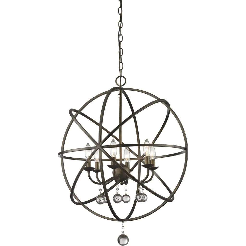Spherical art at its best On this 10 light pendant, the rich hues of the golden bronze finish mingle playfully with the crystal spheres sparkling from within.