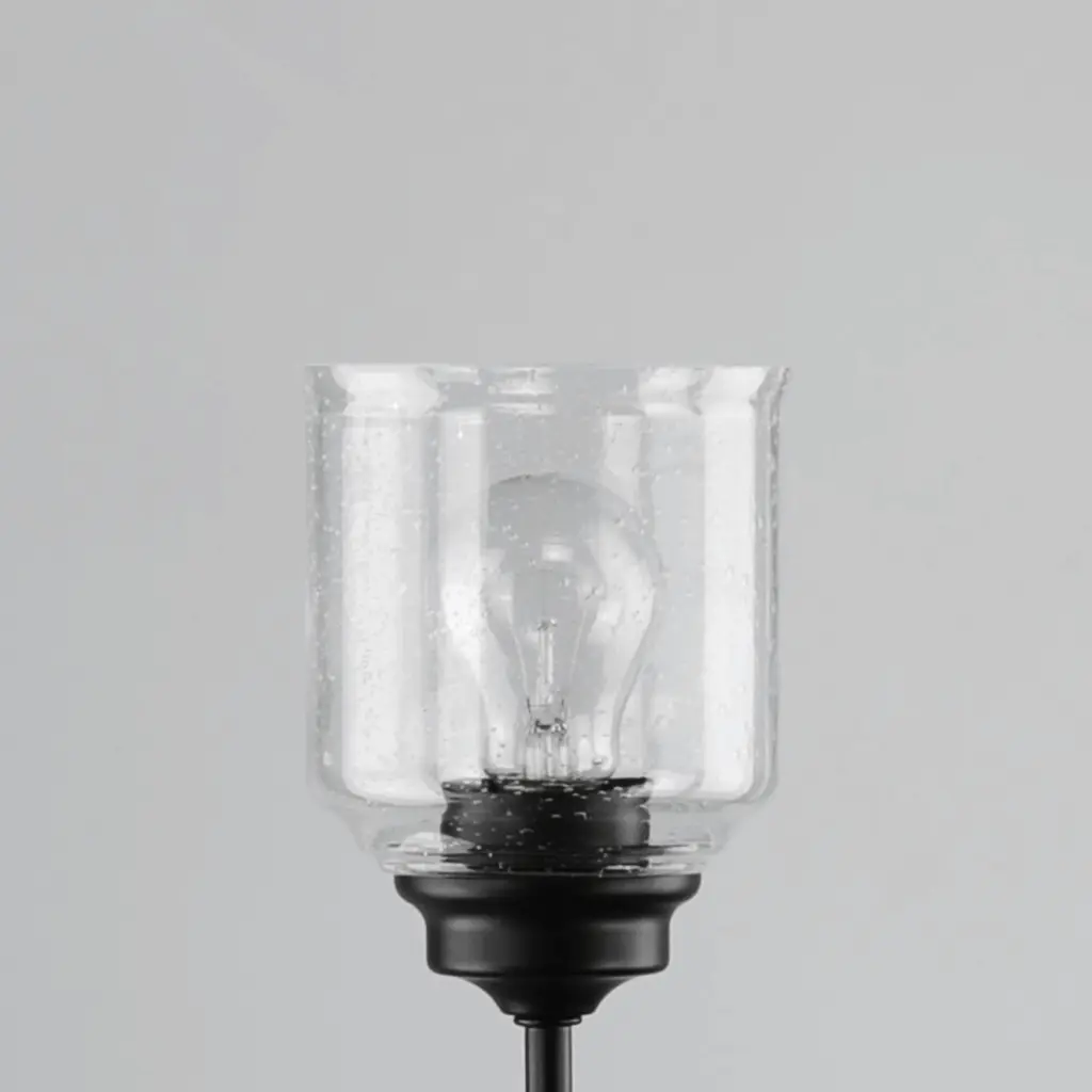 A clean and simple frame features arms that gently bend to support a Clear Seedy glass in a traditional bell shape. An easy choice for a transitional look, available in matte Black or Satin Nickel.
