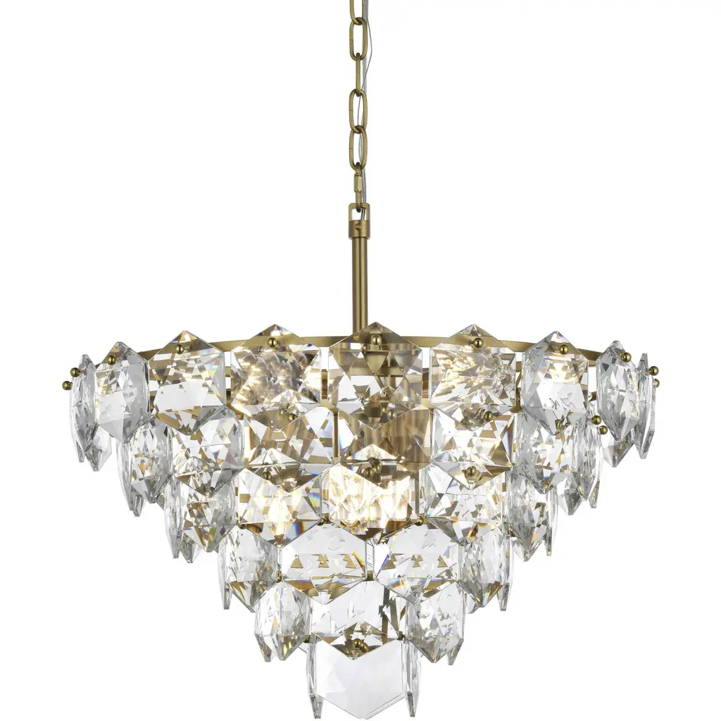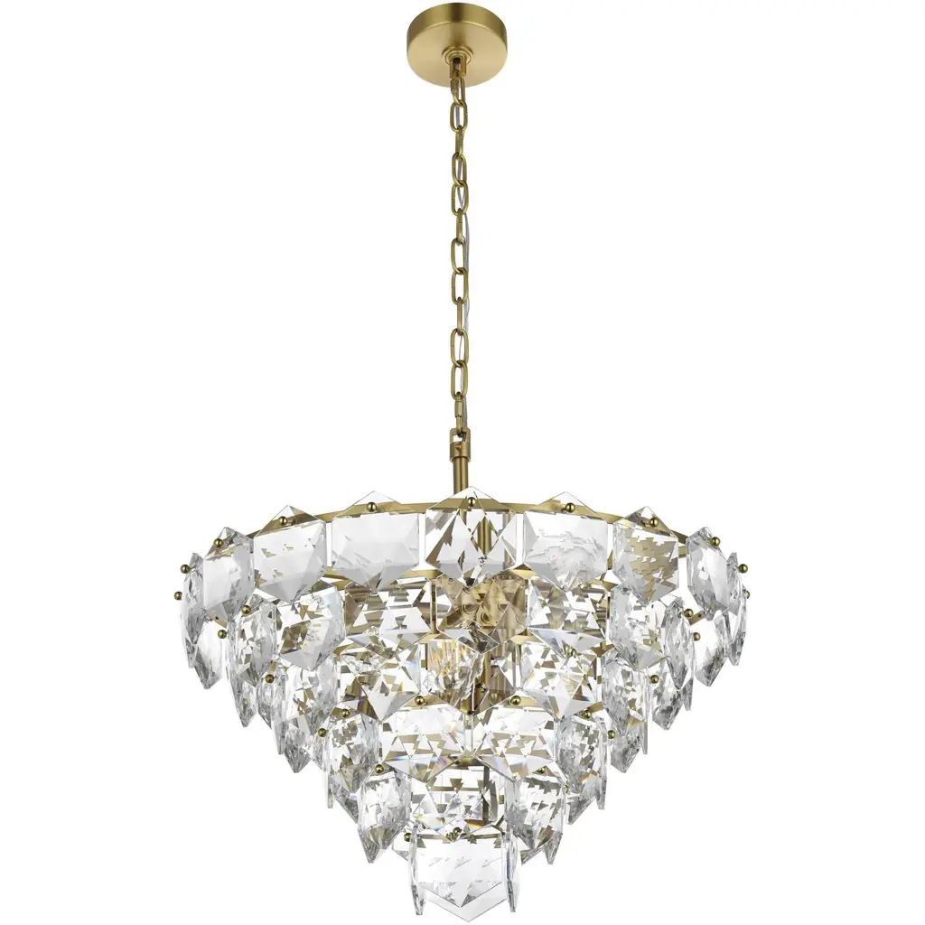 Transform your space with this cascading multi-tier pendant light that combines striking design with meticulous craftsmanship. Crafted from a sturdy iron frame and adorned with six-sided faceted crystals, this lighting piece exudes charm through its ability to diffuse light into a soft, radiant glow. With finishes available in both sleek chrome for a contemporary feel and satin gold for a warmer, refined touch, it complements a range of decor styles. The adjustable height, from 23 inches to 83 inches with the included 59-inch chain, ensures it fits seamlessly in any setting. Equipped with eleven E12 sockets and dimmable functionality, you can customize the lighting to suit your mood or occasion. Its matching canopy and chain finish complete the cohesive design, making it perfect for kitchens, dining rooms, living rooms, or offices. A statement piece that transforms your space into a work of art, this pendant is the perfect blend of style and functionality.