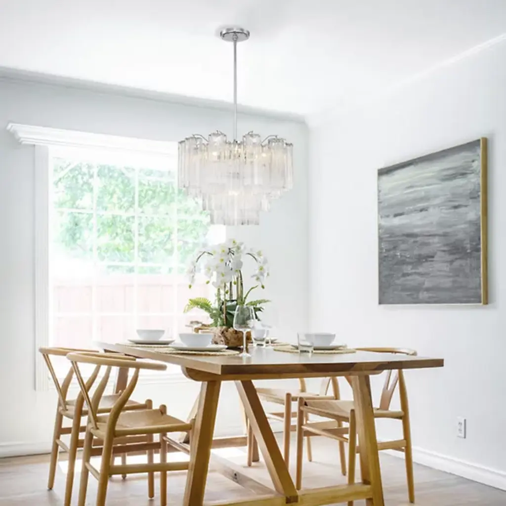 The Addis Large Chandelier from Crystorama is a captivating blend of transitional style and sophistication. Crafted with precision from robust steel, this chandelier boasts a design that seamlessly marries form and function. Its distinctive feature lies in the arrangement of glass shades, which encircle the central structure in a carousel fashion. When illuminated by the brilliant LEDs, it radiates alluring light, casting a warm ambiance. A tapered profile adds an extra touch of elegance to its design.