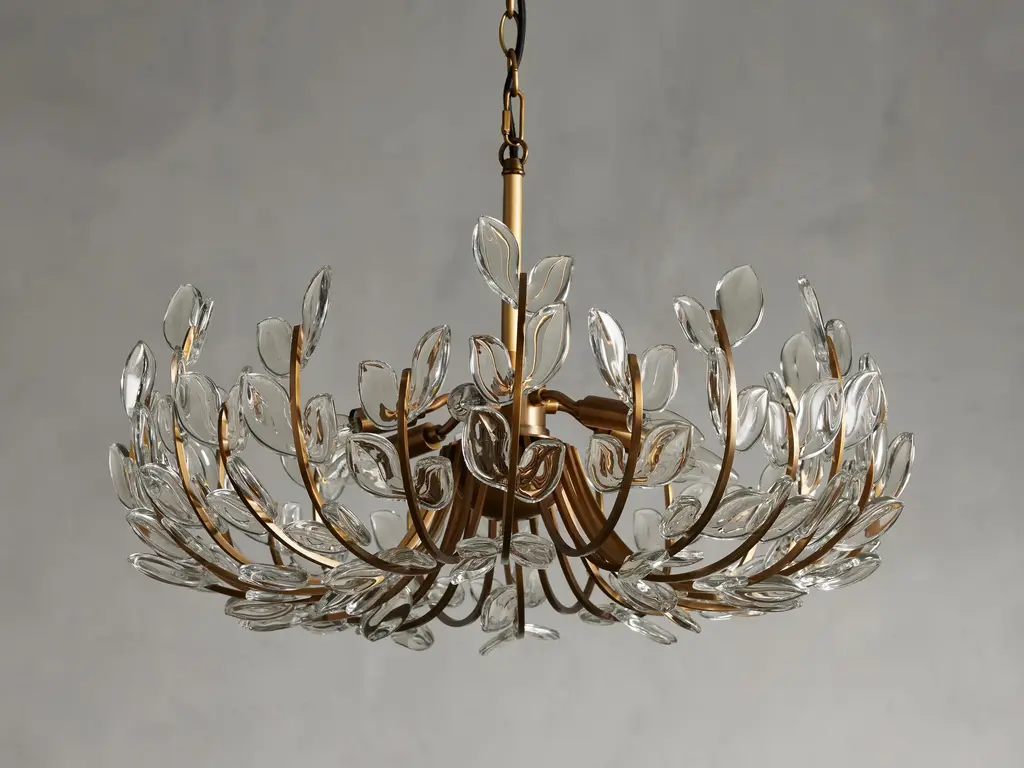 Handcrafted from steel with brass plating, Adela scatters light through its beautiful glass petals. A lovely statement for any living space, softly sculpted petals create an organic feel, while steel branches secure the canopy and provide structure to the piece.